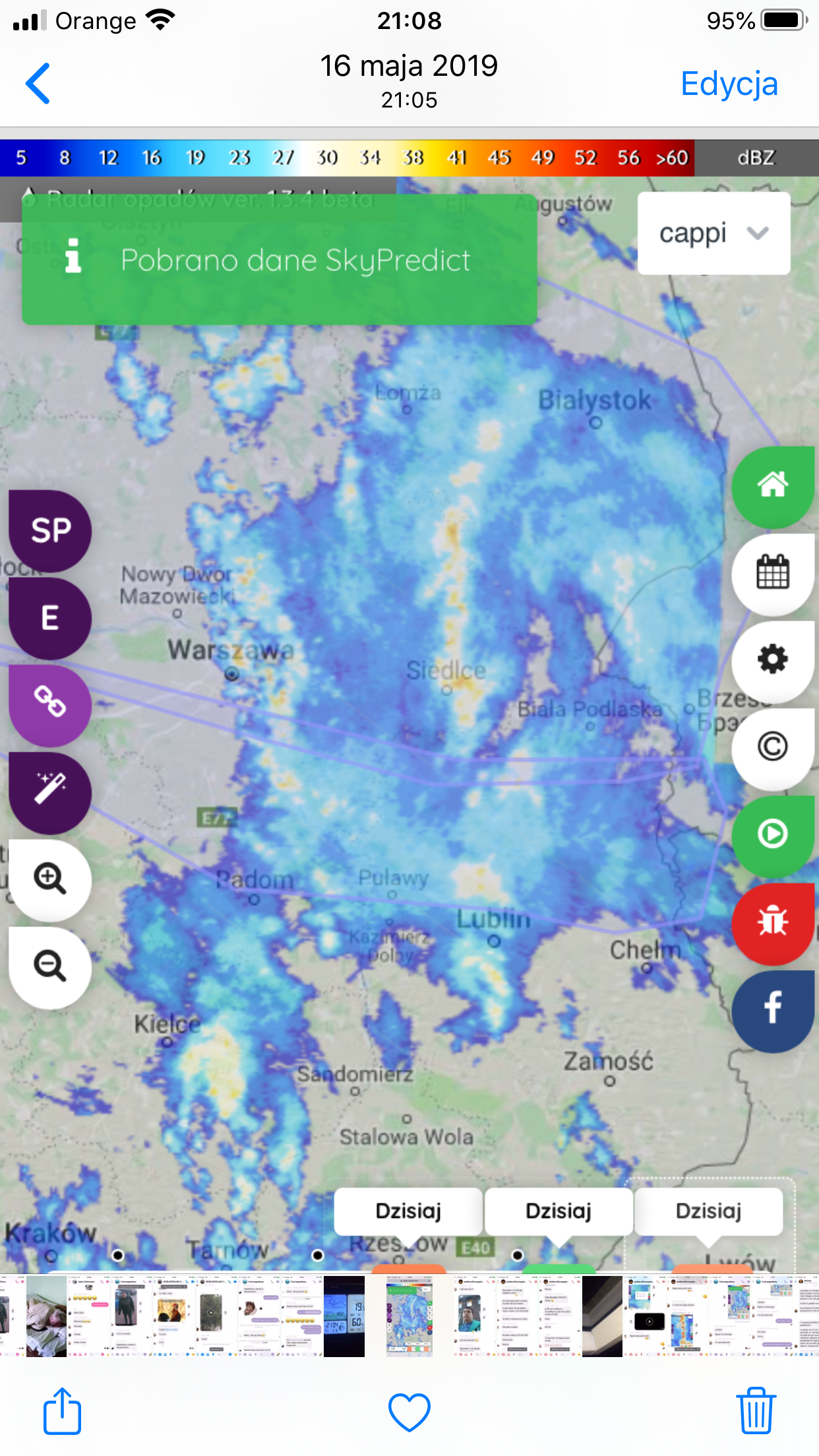 Mam nawet nagrania z tego deszczu, ale niestety ich nie wstawię. No chyba, że przez jutuba... W każdym razie lało konkretnie, wg stacji w Pruszkowie spadło aż 16mm (no minus to co popadywało w ciągu dnia, ta ulewa z poranka poszła oczywiście na poczet doby meteorologicznej 15.05)