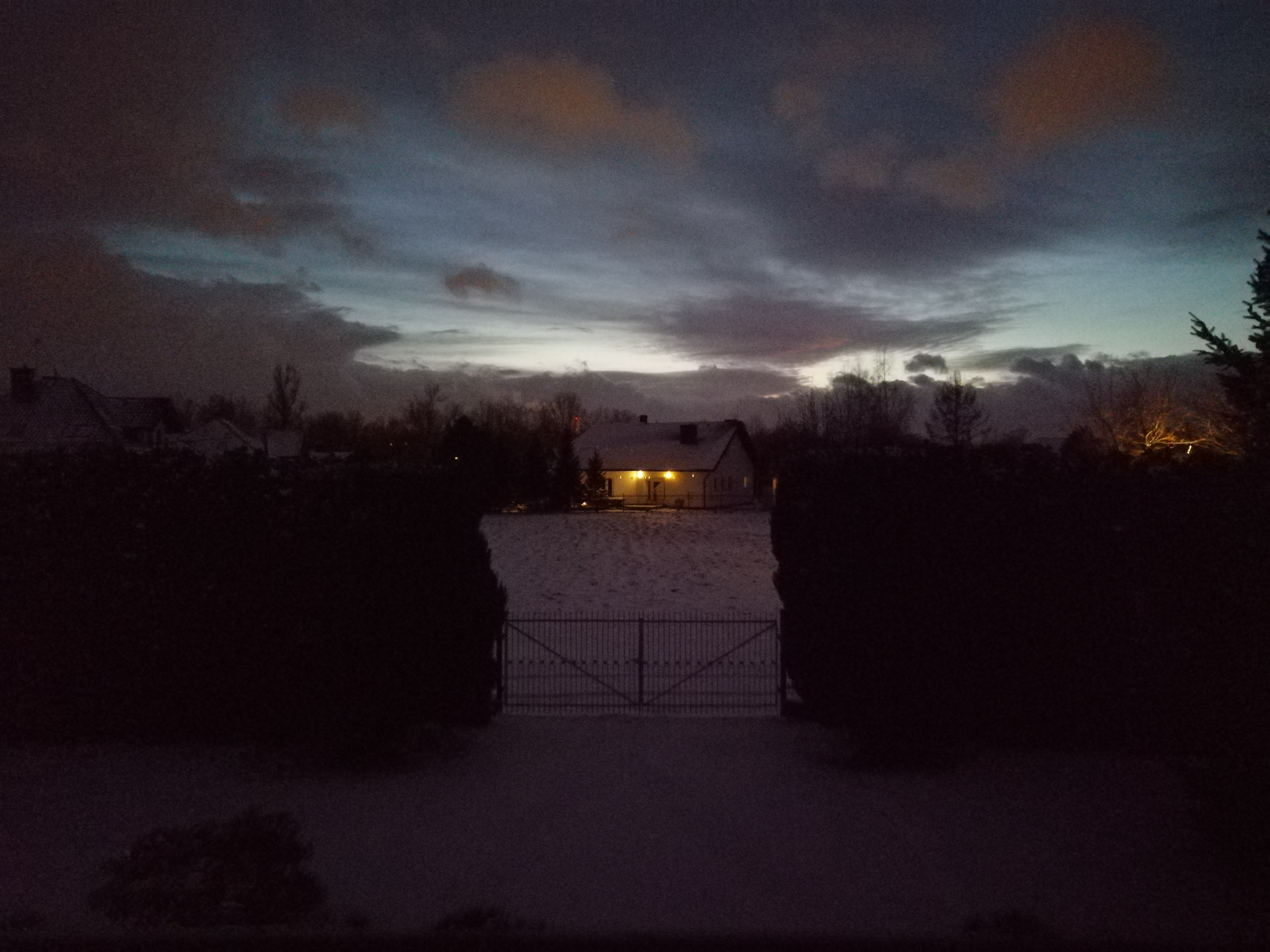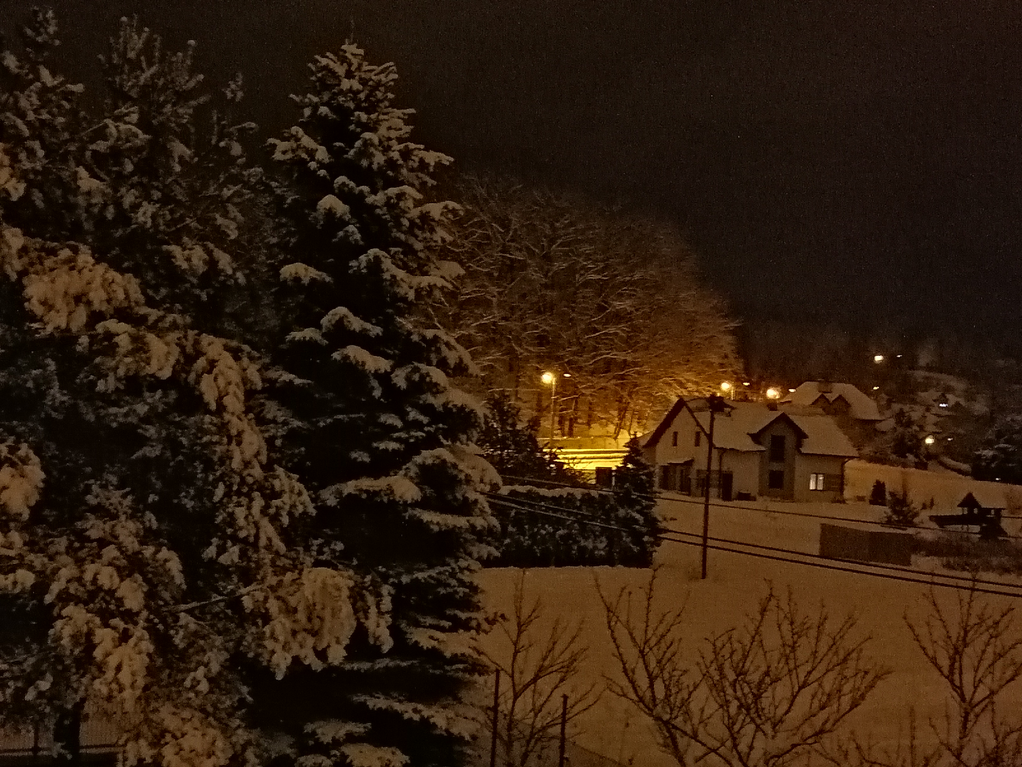 Wieczorem, po zachodzie Słońca, rozpogodziło się. Później znowu zaczęło sypać, ale już nie mam zdjęć tego śnieżku. Ogólnie 3 stycznia "cukrzyło" chyba w pięciu falach.