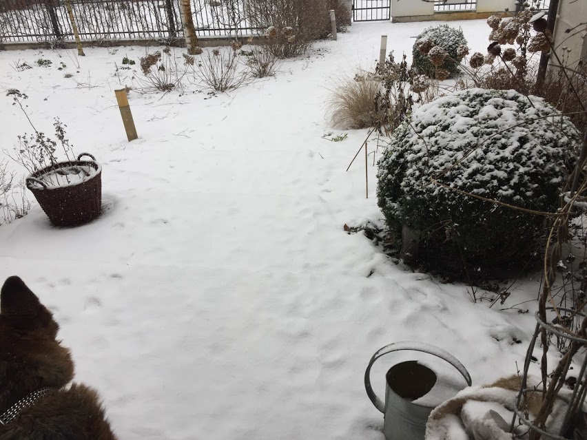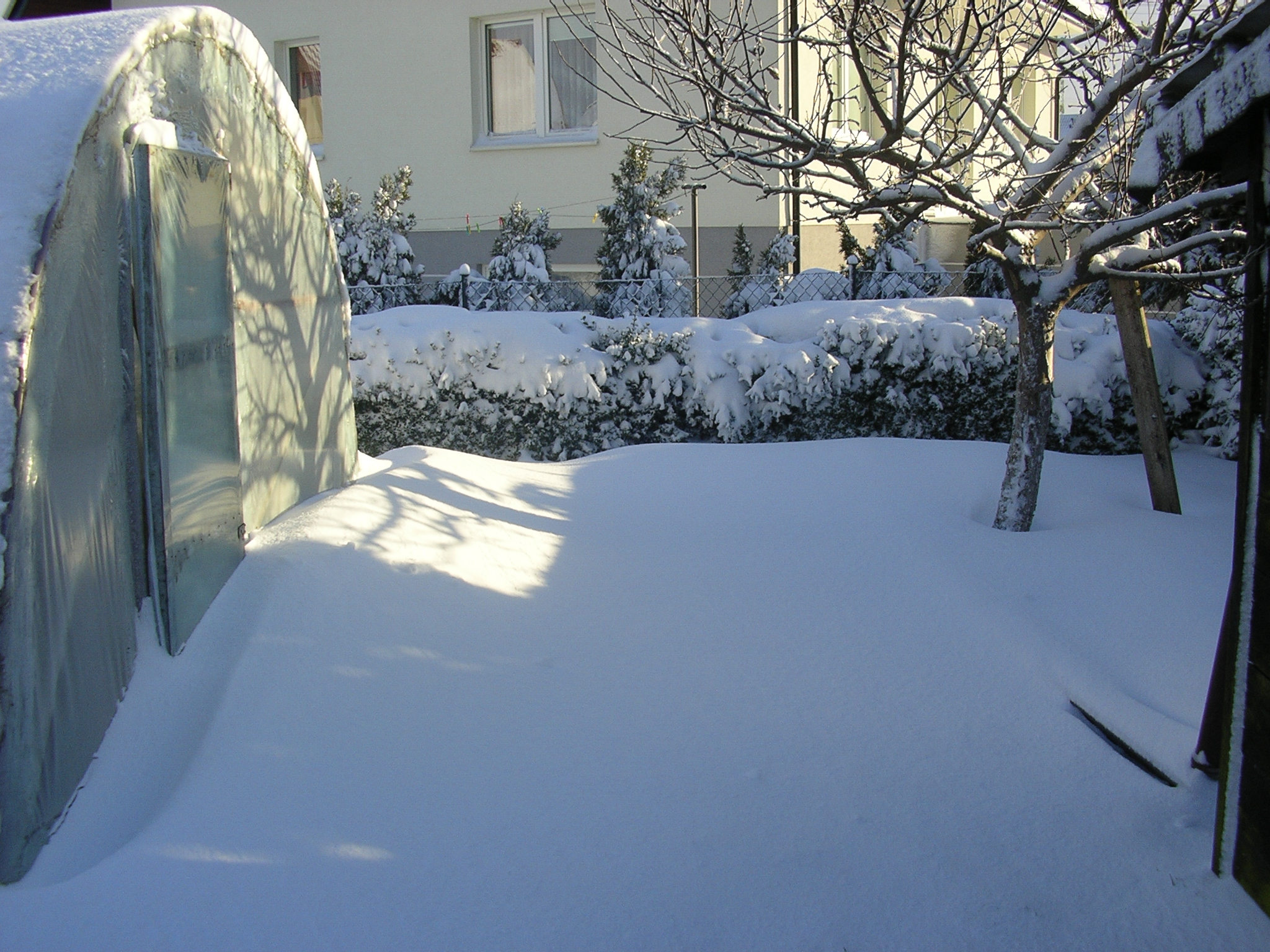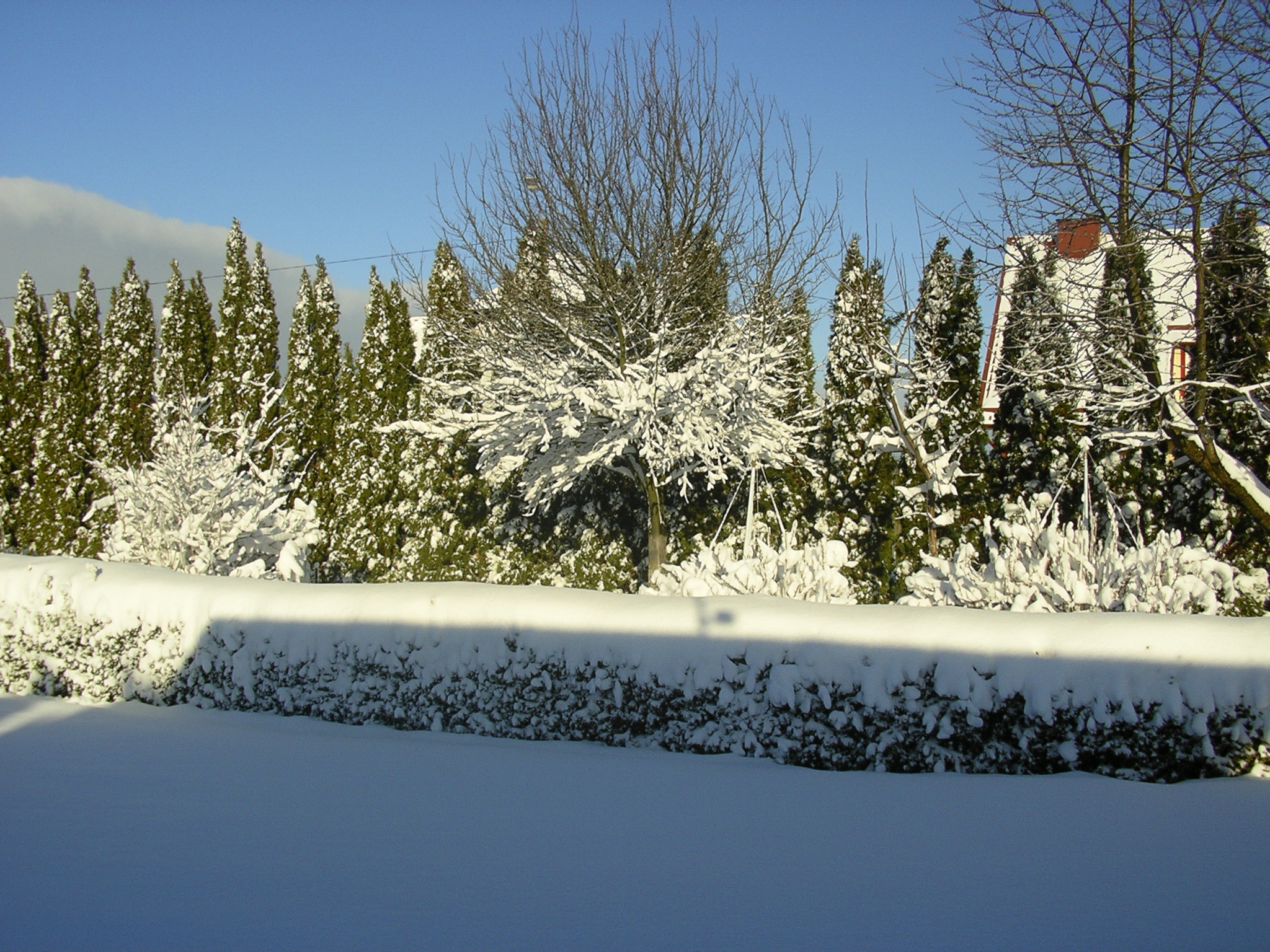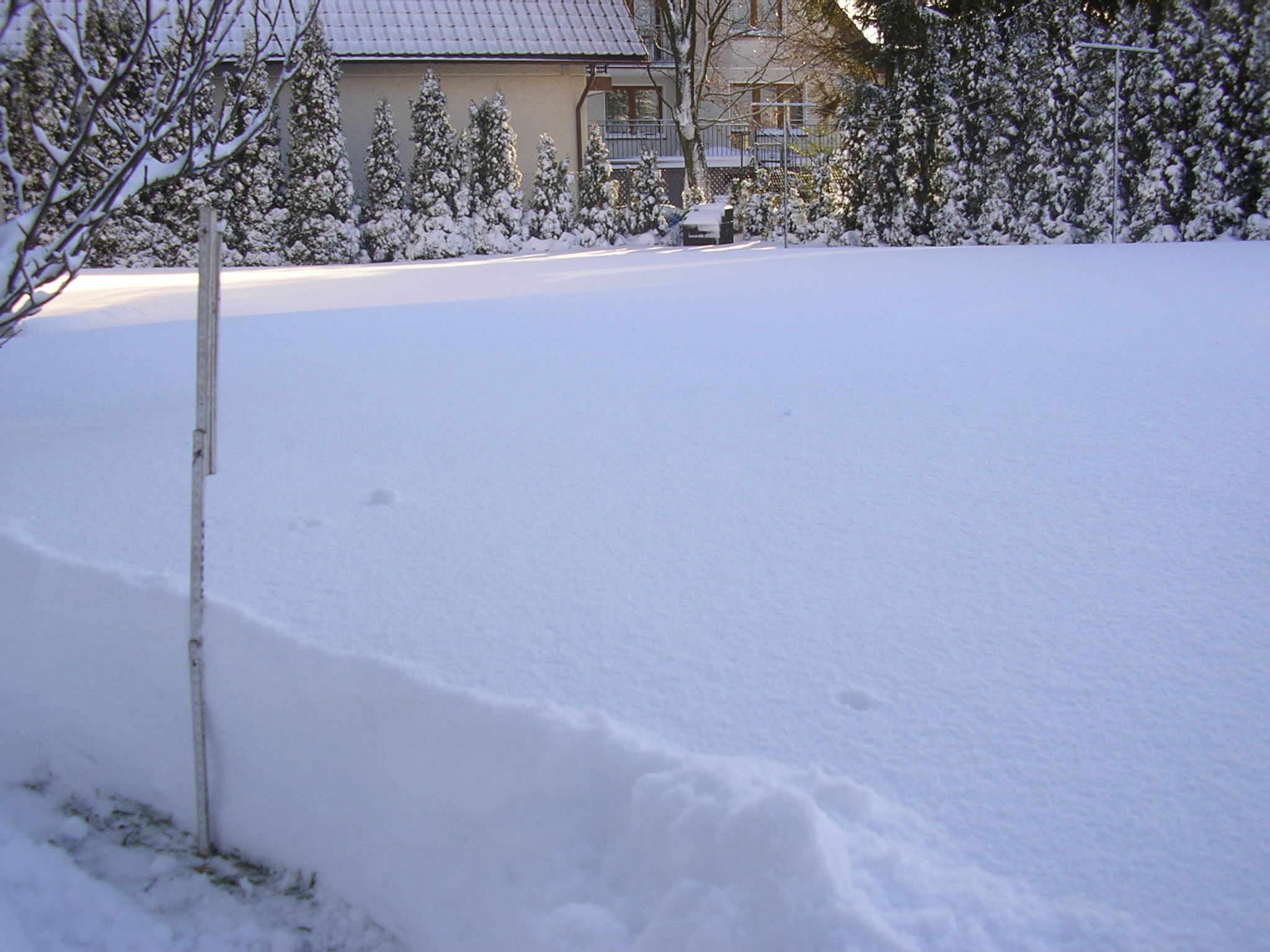 Pięknie sypało dalej. Tak wyglądał po południu mój ogród:
