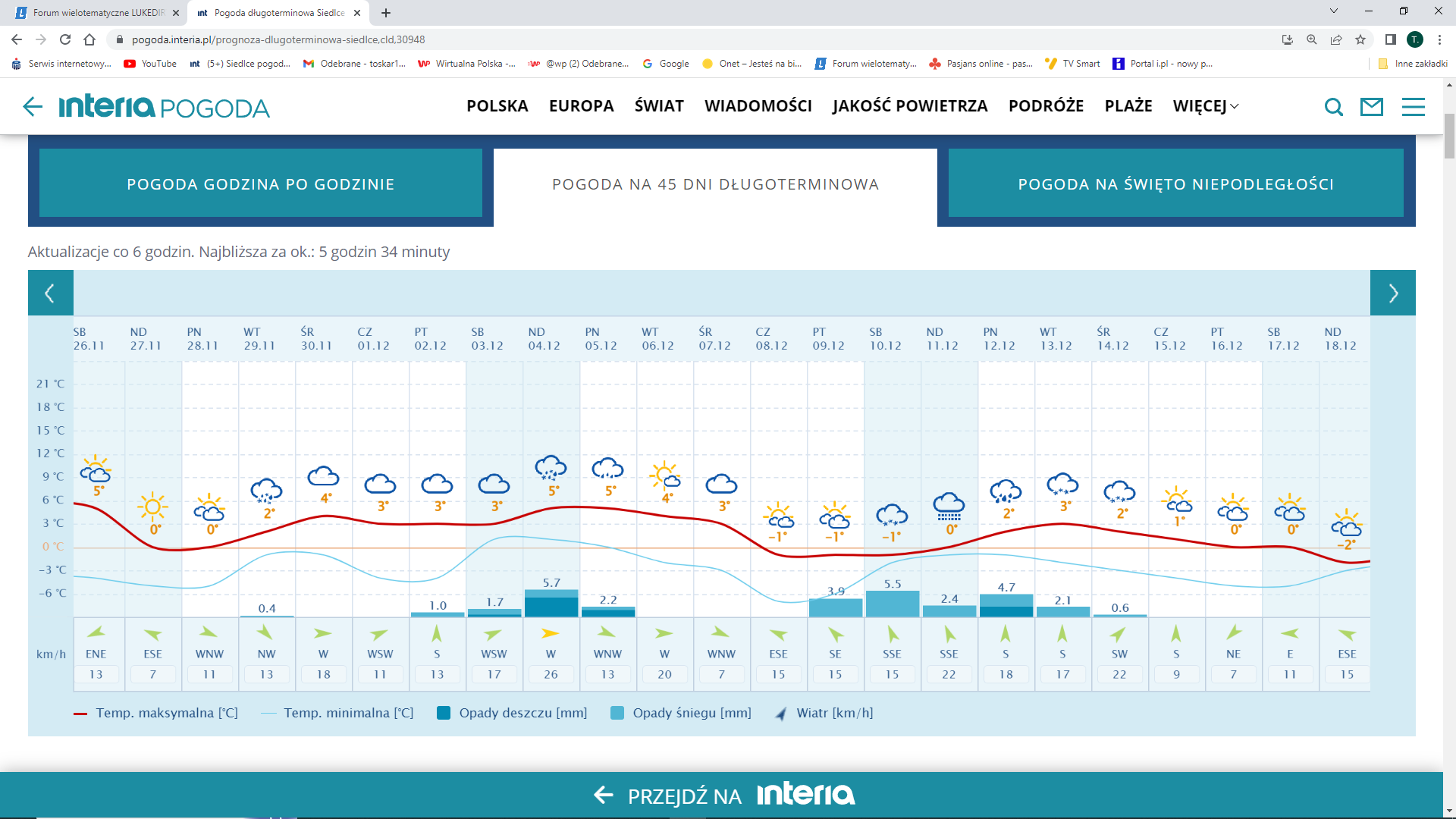 Tymczasem u mnie to ma tak wyglądać - w praktyce to nawet 18.11. będzie dodatnia Tmax ( o ile lampa się pokaże):