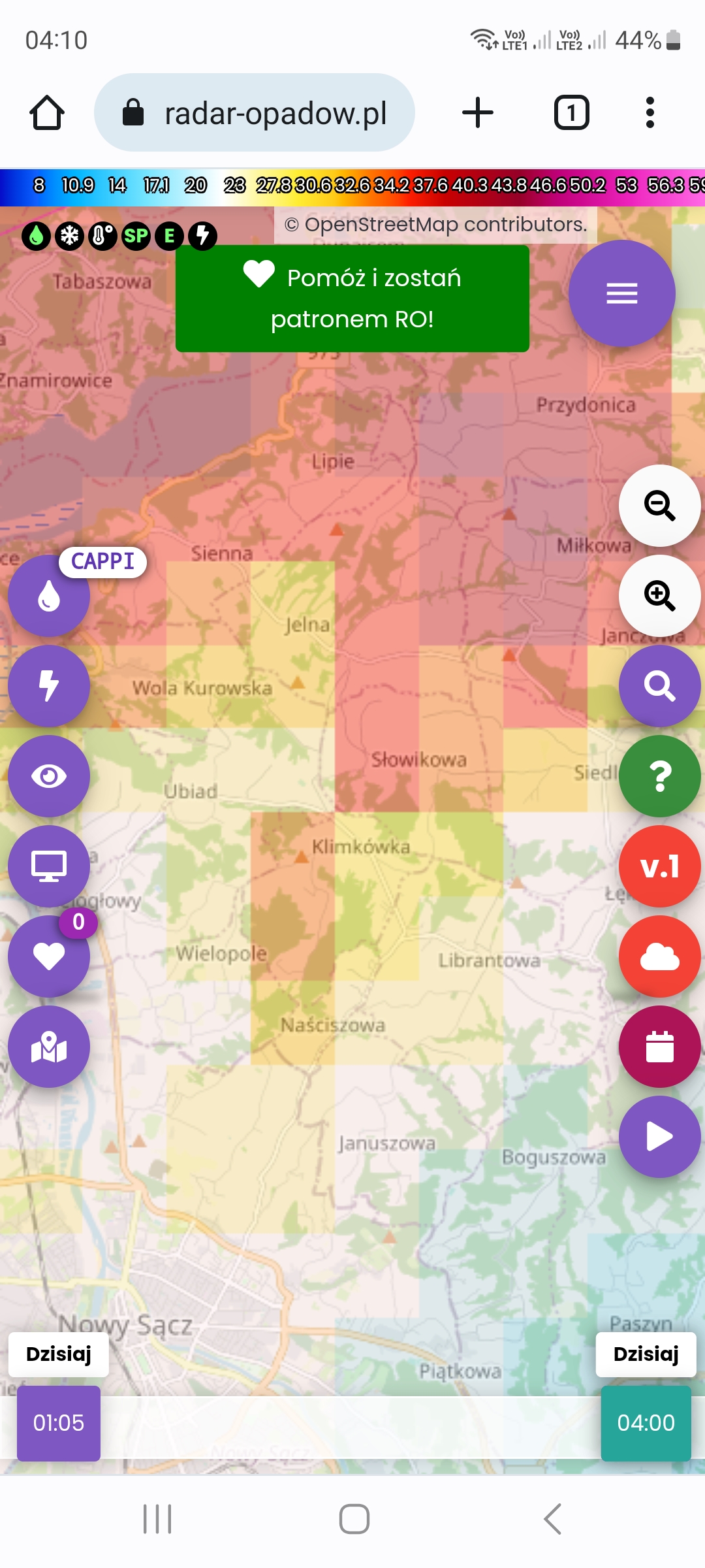 Wiadomo było jednak, że to jeszcze nie koniec. Późnym wieczorem kolejne burze zaczęły siać spustoszenie na Śląsku i Opolszczyźnie. Zagrożone były dwie imprezy - festiwal pirotechniczny w Nysie i finał Męskiego Grania w Żywcu. Tę drugą imprezę oglądałem na żywo, zerkając na bieżąco na detektor wyładowań i radar opadów, aby kontrolować jak daleko znajduje się nawałnica. Nawet pisałem o tym na czacie i podziwiałem odwagę widzów, których nie wystraszyły bliskie wyładowania na chwilę przed nadejściem ulewy.