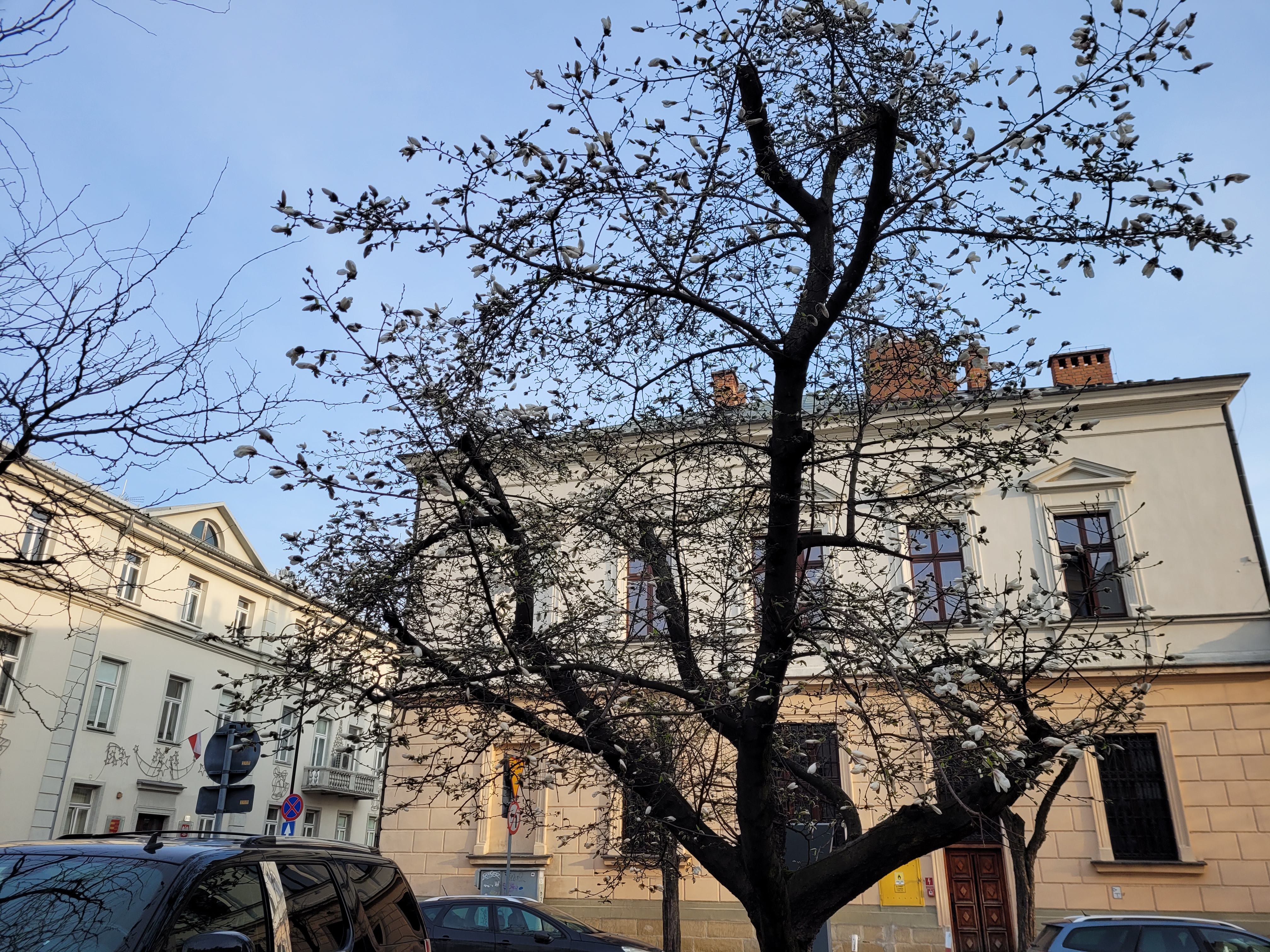 Magnolia japońska na pierwszym zdjęciu Piotra jest strasznie brzydko poobcinana Po co tak niszczyć drzewo, jeśli można wyciąć całe