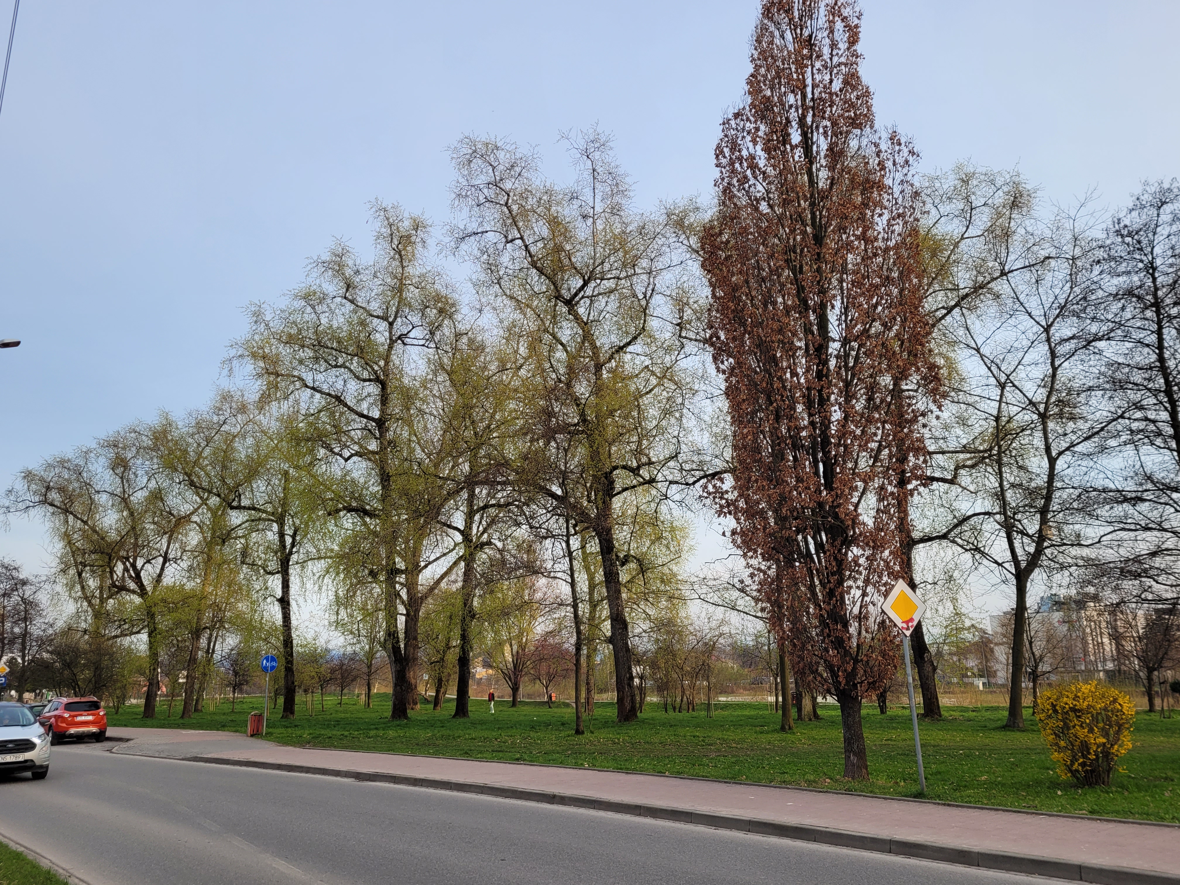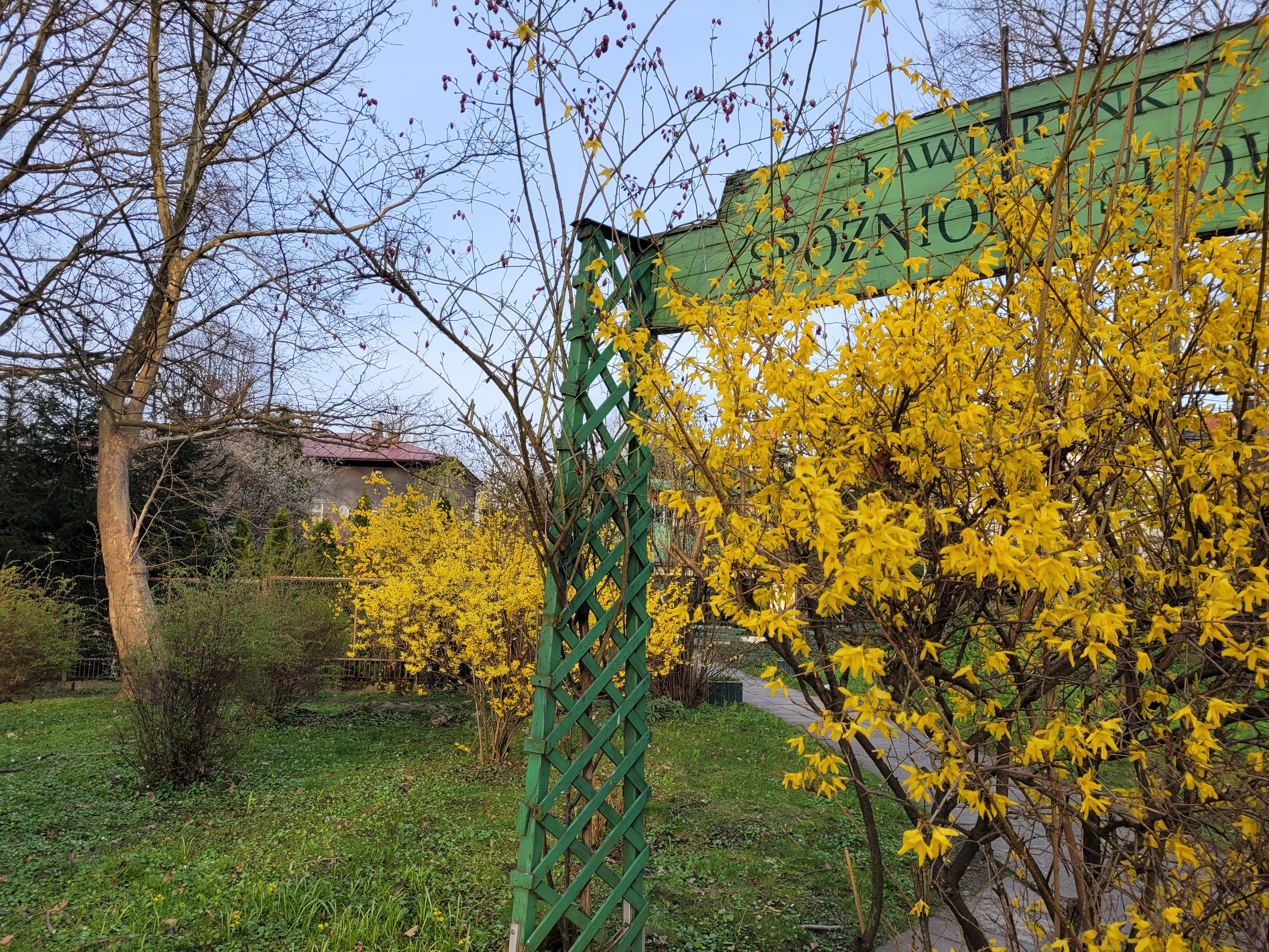 Co do forsycji, to pąki zaczynają pękać i widać zaczątki żółtych płatków. Nie fotografowałem. W zacisznych ogródkach domków jednorodzinnych w mieście niektóre istotnie już kwitną.