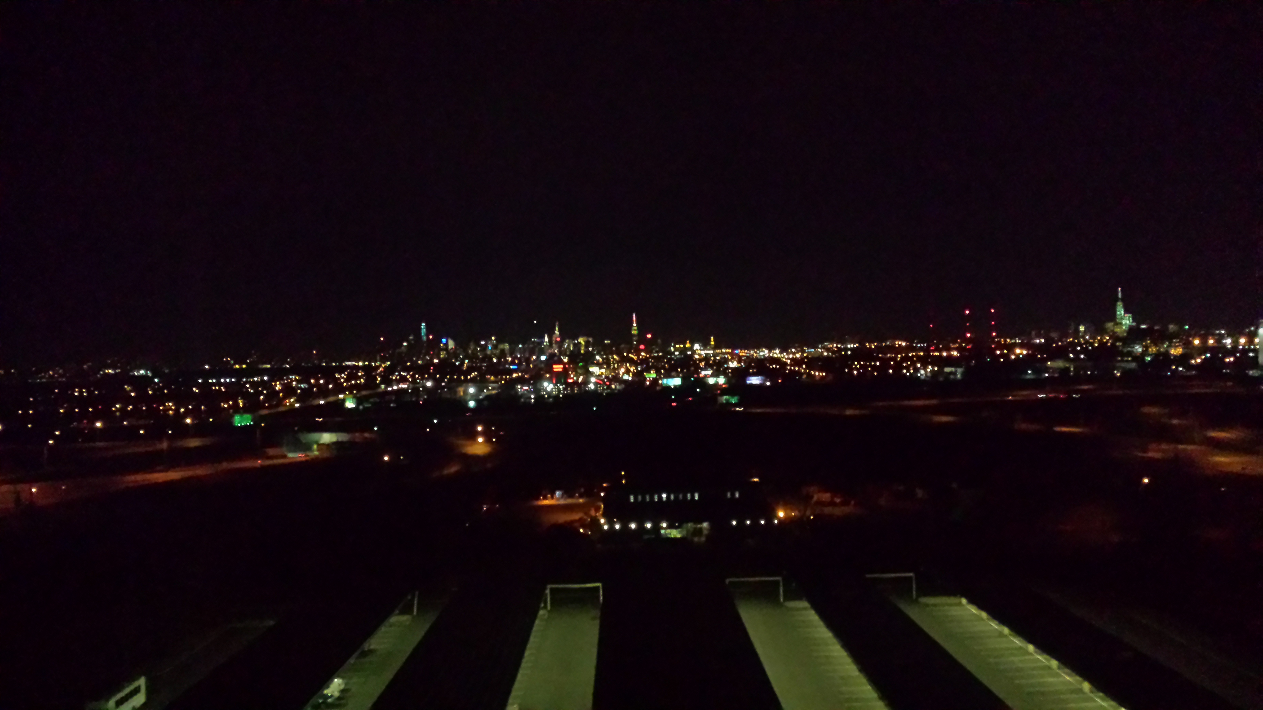 Po niemal dziewięciu godzinach nieprzespanego lotu (nie potrafię spać w podróży poza wyjątkowymi sytuacjami) dotarłem do celu. Lotnisko Kennedy'ego w Nowym Jorku jest przeogromne i kołowanie do odpowiedniego stanowiska trwało ponad pół godziny. Choć w Polsce dochodziła już 4 nad ranem, tu pora była jeszcze młoda. Po przejeździe przez miasto i pierwszych kilku spojrzeniach na jedno z centrów światowej kultury, dojechaliśmy do hotelu, w którym zajęliśmy 14 piętro. Taki widok dane nam było podziwiać z okien