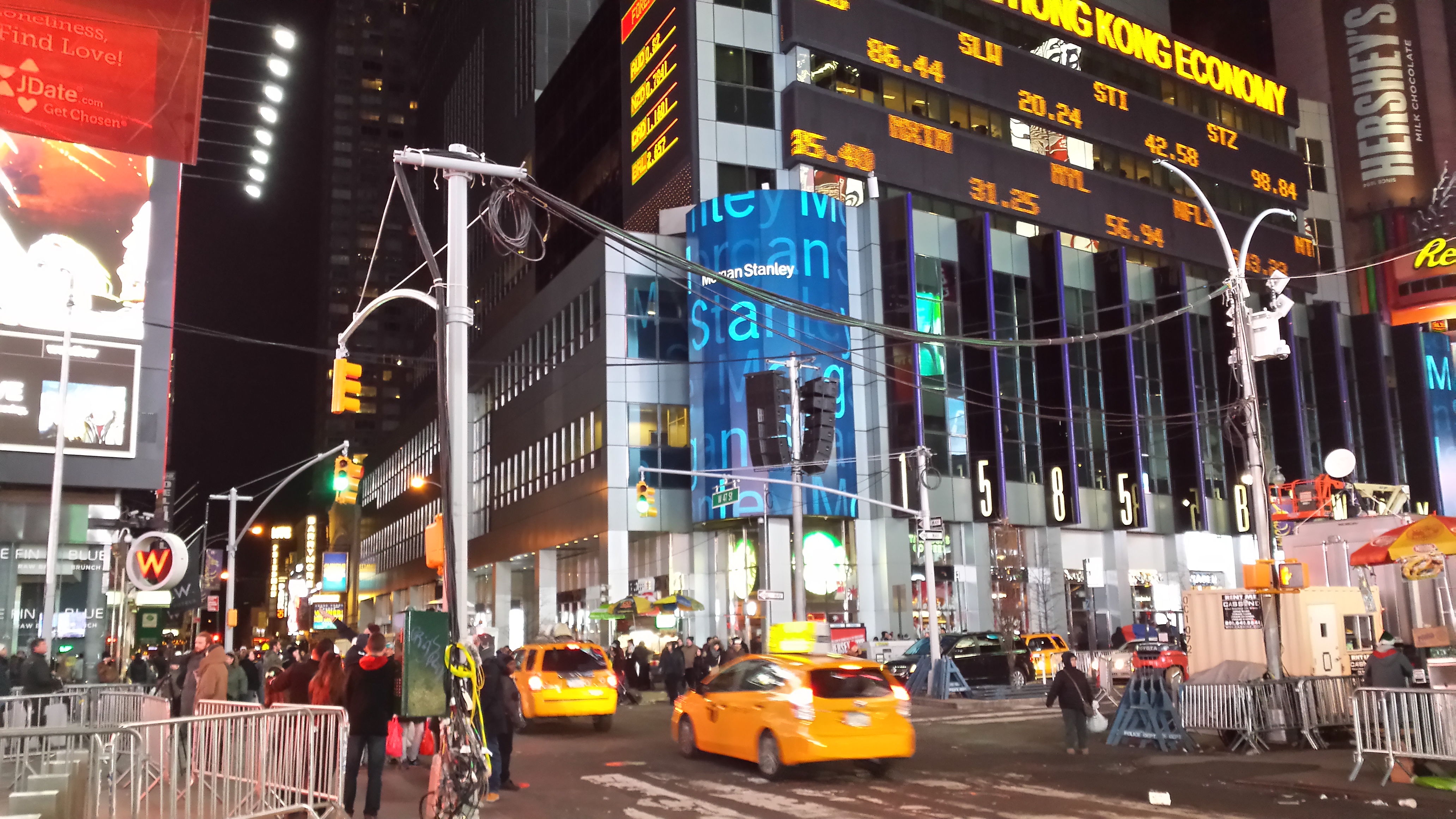 Z tym że czym jest szok termiczny wobec szoku wywołanym widokiem mieniących się tysiącem kolorów wieżowców na Manhattanie i Times Square - "skrzyżowania świata" rozświetlonego mnóstwem świateł i reklam. Miasto przygotowywało się do sylwestrowego szaleństwa.