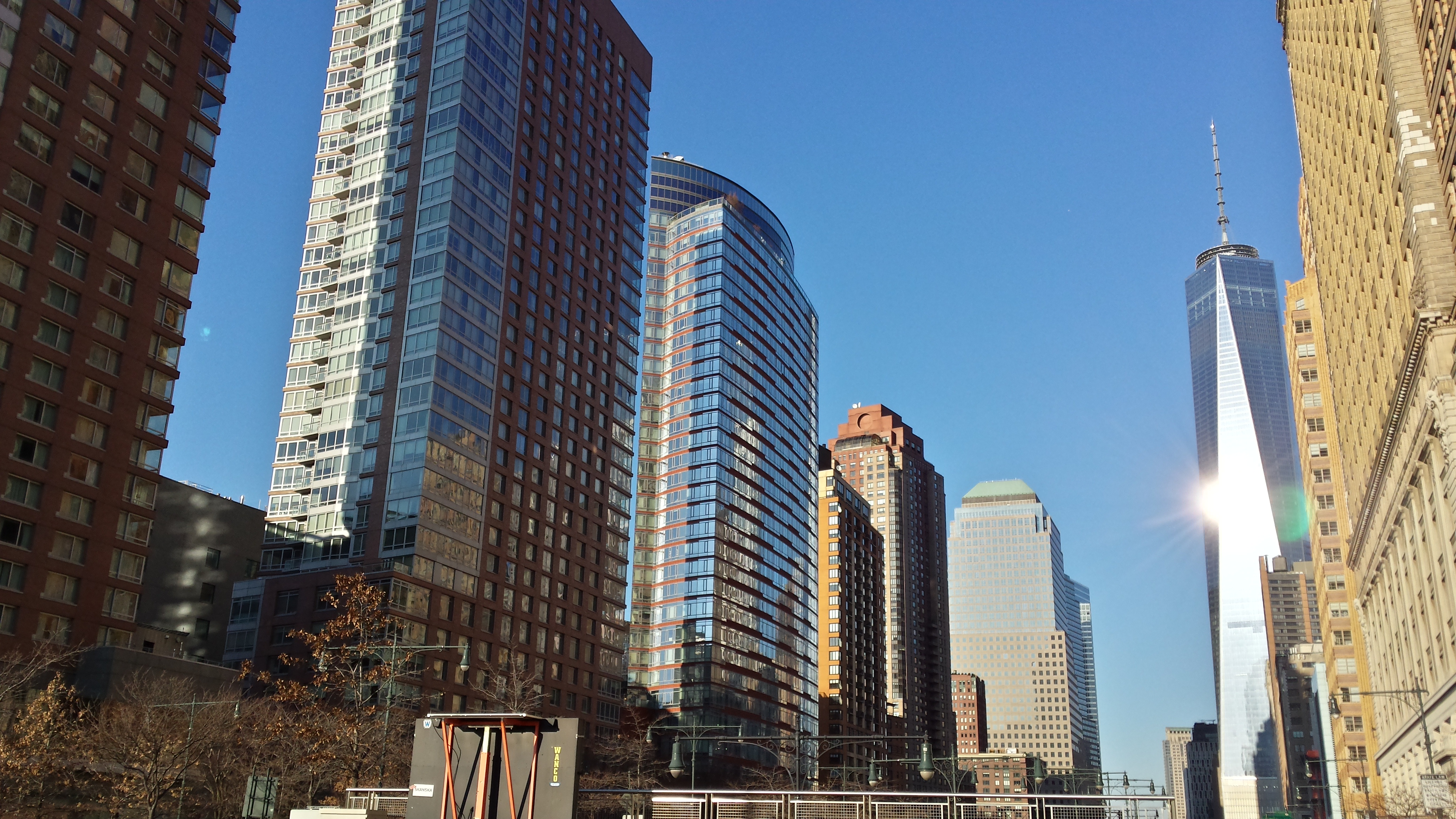 Od góry: Ground Zero i Freedom Tower (World Trade Center), "lodowisko Kevina", Most Brooklyński i Flatiron Building. Wspaniały dzień i wspaniała pogoda