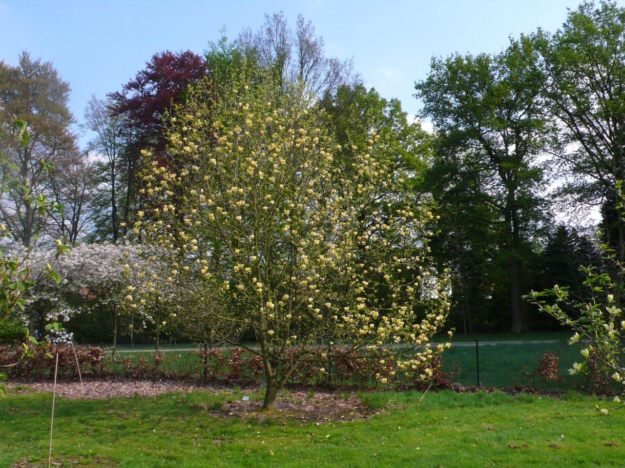 Drzewo do 8 metrów wysokości. Kwiaty duże o limonkowej barwie, pachnące. Kwitnie od kwietnia do maja.
