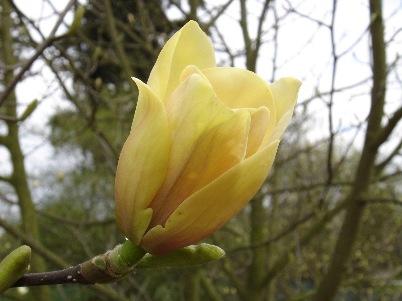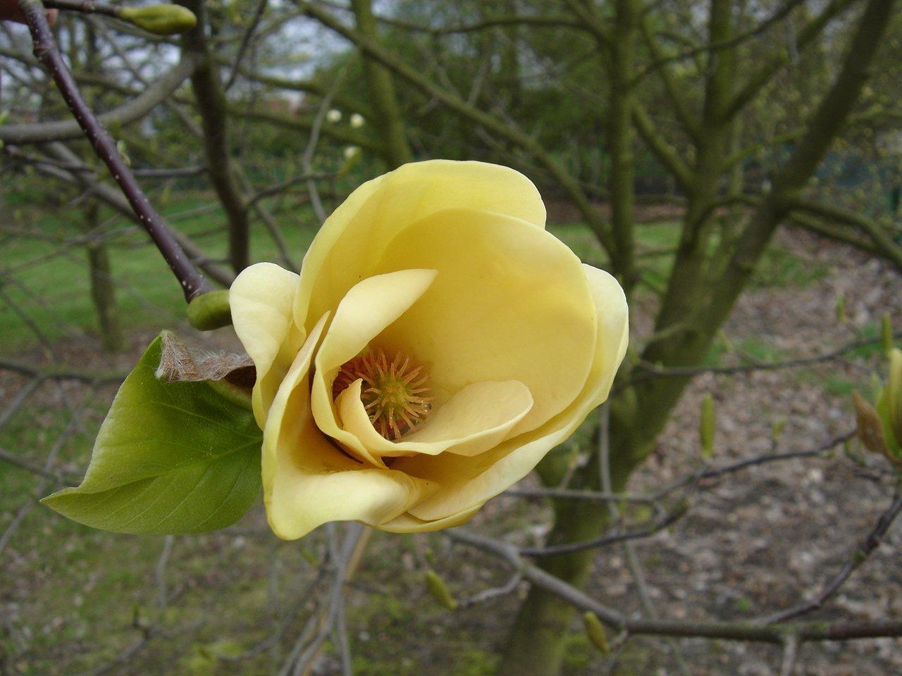 Drzewo bądź krzew osiągający 8 metrów wysokości, dość rozłożysty. Kwiaty jasnożółte, wielopłatkowe, średniej wielkości (średnica po otwarciu ok. 13 cm), pachnące. Kwitną od kwietnia do maja. Wymagania takie same jak u innych żółtych magnolii. M. acuminata x m. denudata.