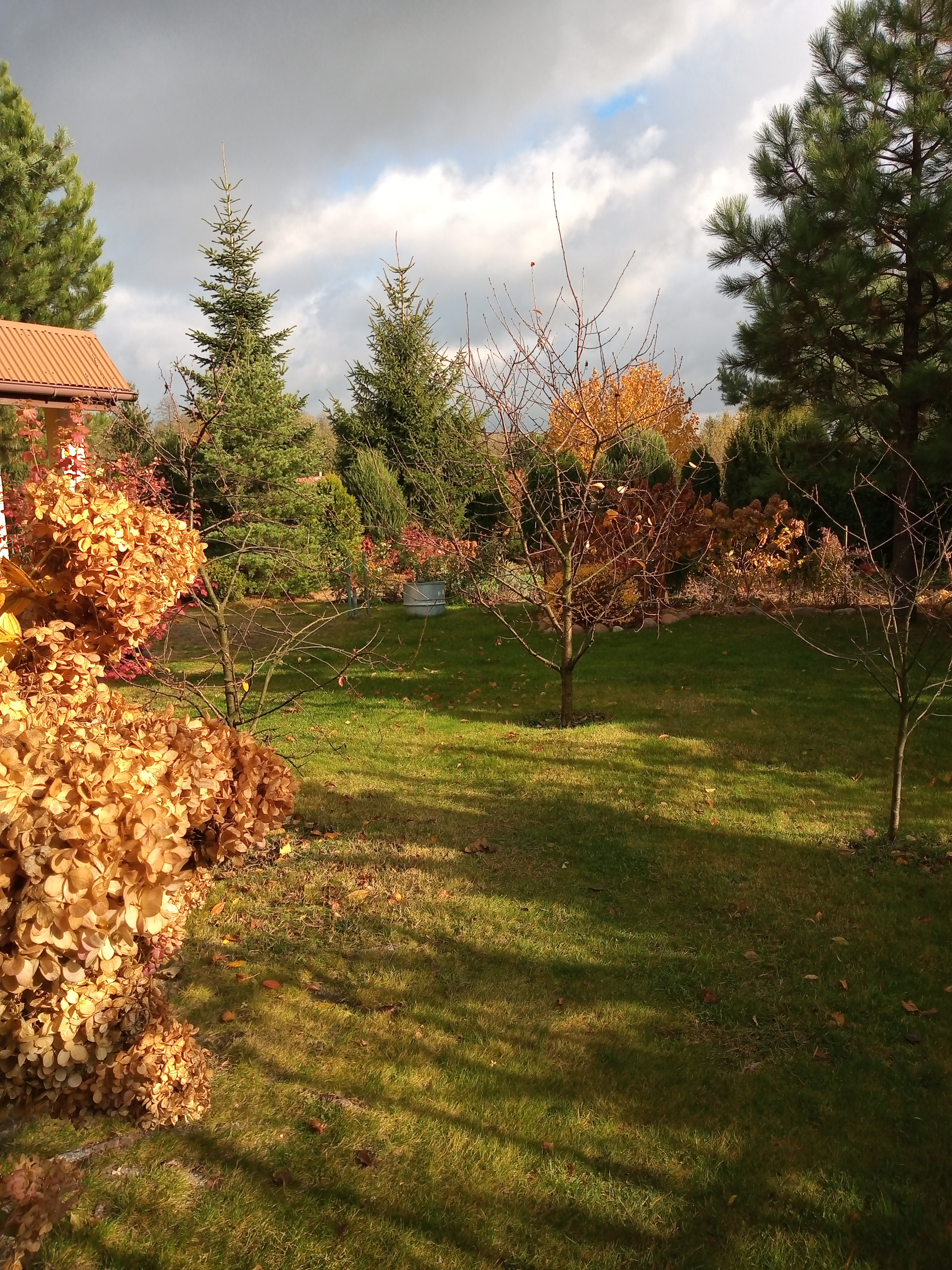 FKP - 24 Październik 2021, 18:35 U mnie w lesie czereśnie są żółte.zgryźliwy tetryk - 24 Październik 2021, 19:51 Działkowe wiśnie jak widać gołe. Tak samo inne drzewka owocowe oraz winogrona. Zbrązowiały kwiaty hortensji. W tle złocą się brzozy.