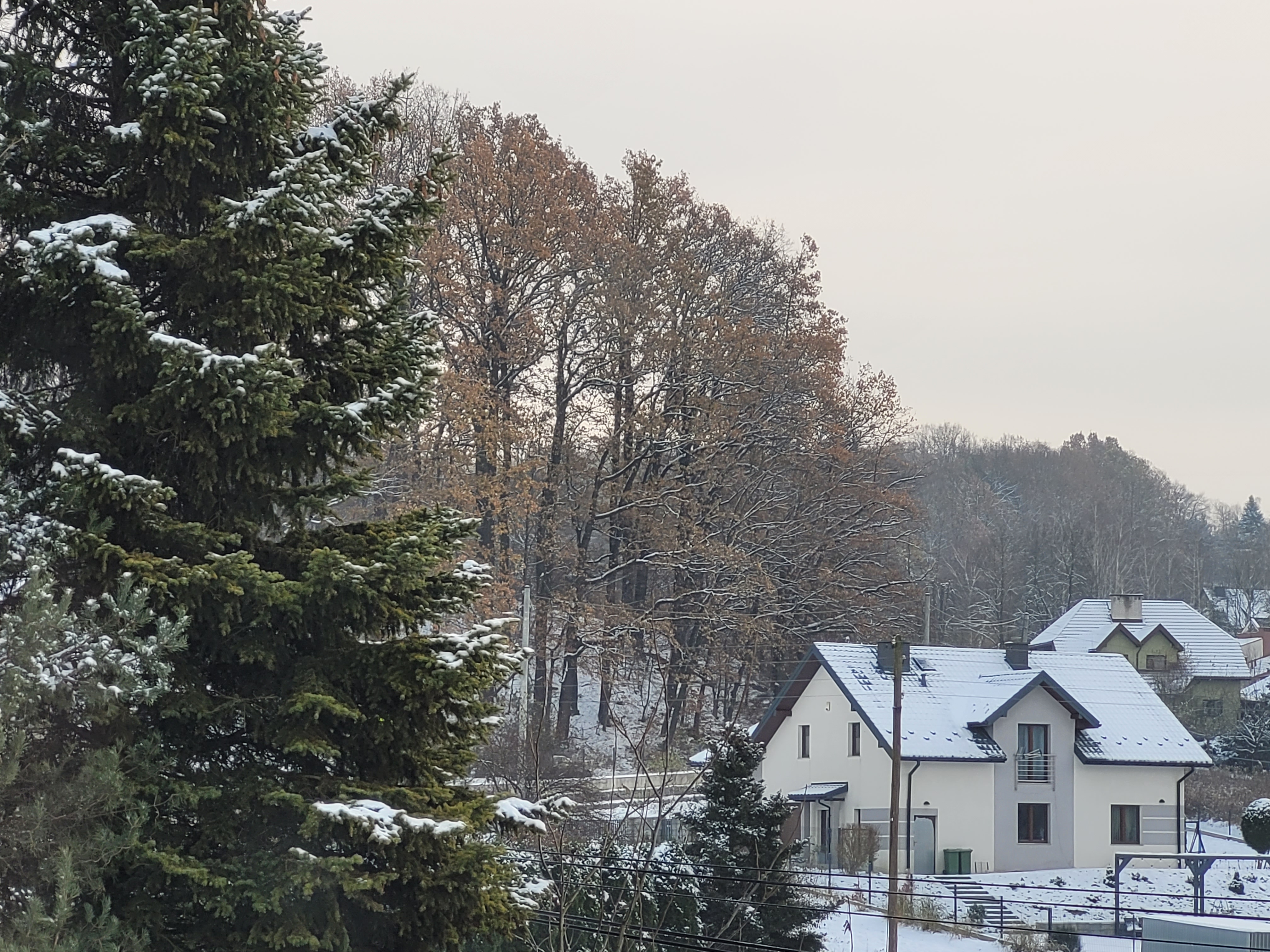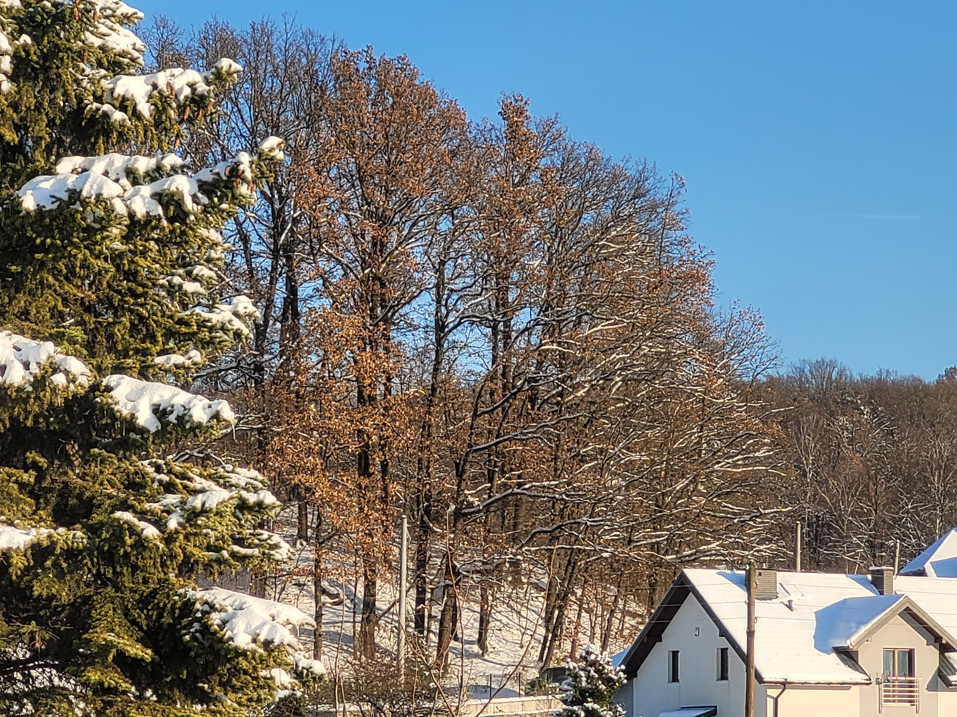 FKP - 5 Grudzień 2023, 18:14 PiotrNS, Dęby szypułkowe mają liście w kwietniu... zeszłoroczne brązowe Niektóre drzewa zostawiają sobie suche liście na zimę.PiotrNS - 5 Grudzień 2023, 22:41 FKP, właśnie na tych dębach nigdy czegoś takiego nie widziałem. Zawsze gubiły wszystkie liście i pozostawały zupełnie gołe, nie zauważyłem wyjątków w tej materii. Liście opadały przeważnie w połowie listopada, a pojawiały się na początku maja. Zdarzały się wyjątki w jedną i drugą stronę (vide wiosny 2018 i 2021, jesień 2016 - początek listopada już goły), ale wejścia ze szczątkowym ulistnieniem w grudzień, w dodatku śnieżny i mroźny w początkowej fazie, nawet sobie nie wyobrażałem FKP - 5 Grudzień 2023, 22:43 PiotrNS, U mnie dęby szypułkowe mają suche liście do około połowy kwietnia, ale te Twoje to bezszypułkowe, a one na ogół gubią, widocznie ochłodziło się po bordowej jesieni tak nagle, że nie zdążyły xdkmroz - 5 Grudzień 2023, 23:34 To u mnie się nadal roi od ulistnionych drzew