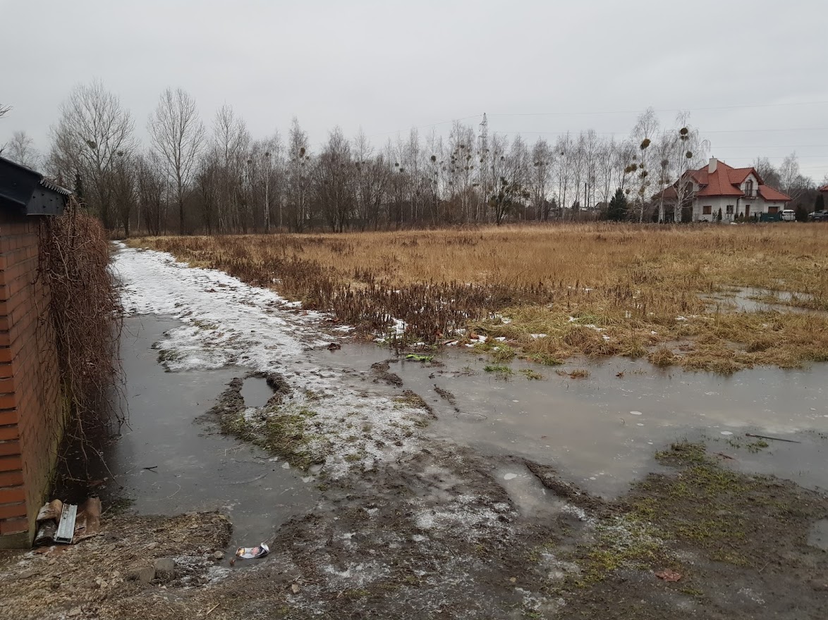 Tu widać z kolei fragment zalany wodą po roztopach i ulewach z poprzedniego dnia, jeszcze nie do końca zamarznięty