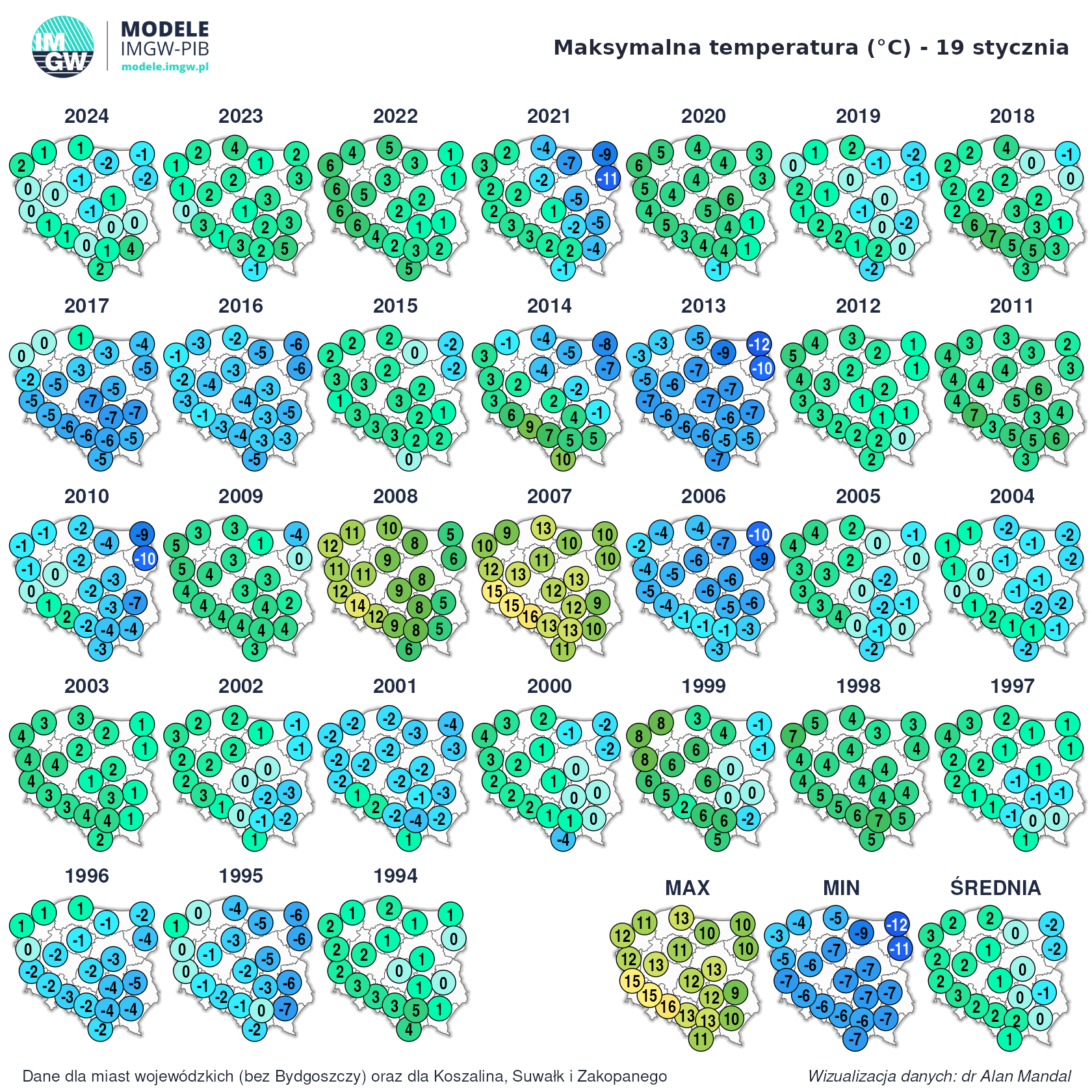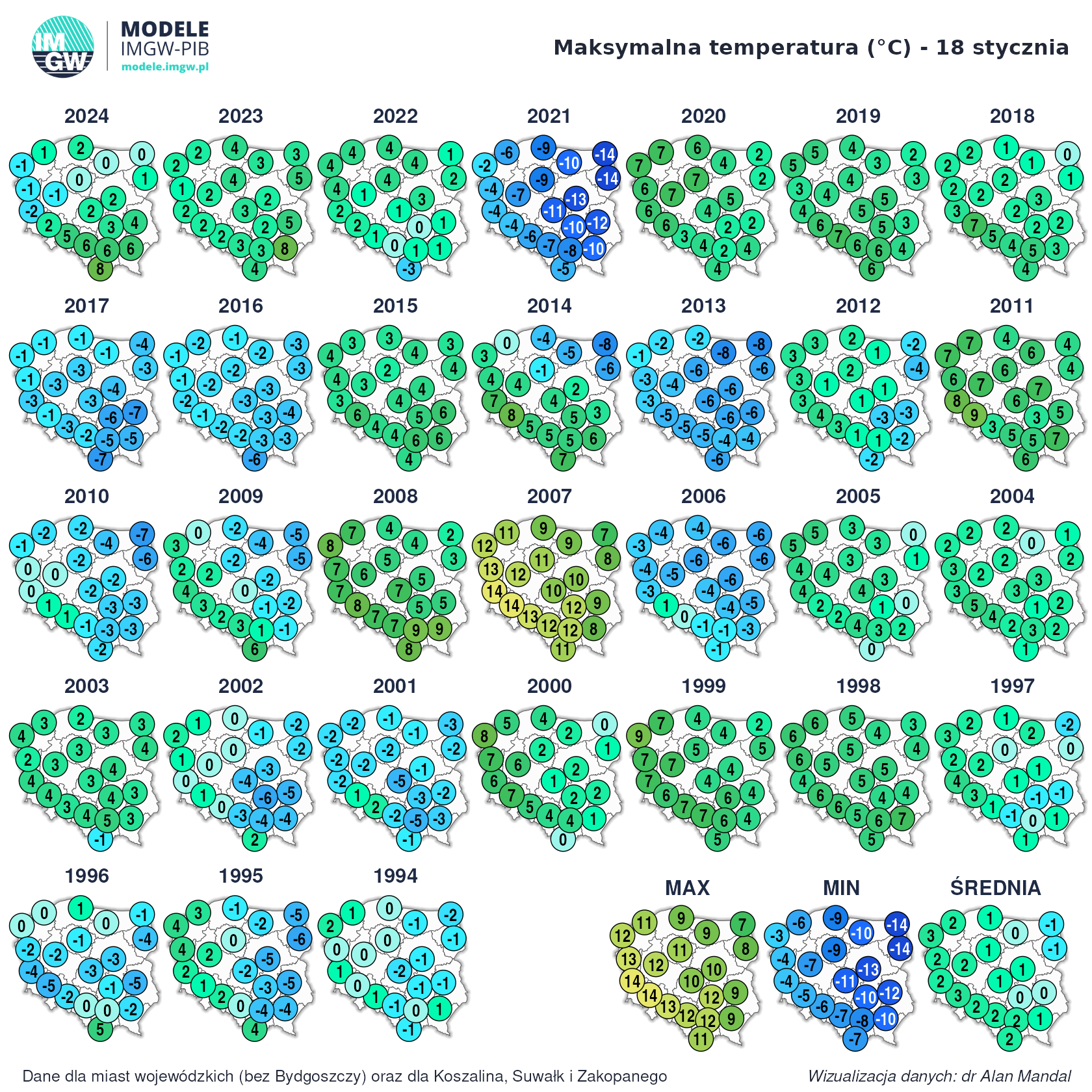 Temperatury maksymalna 18 stycznia