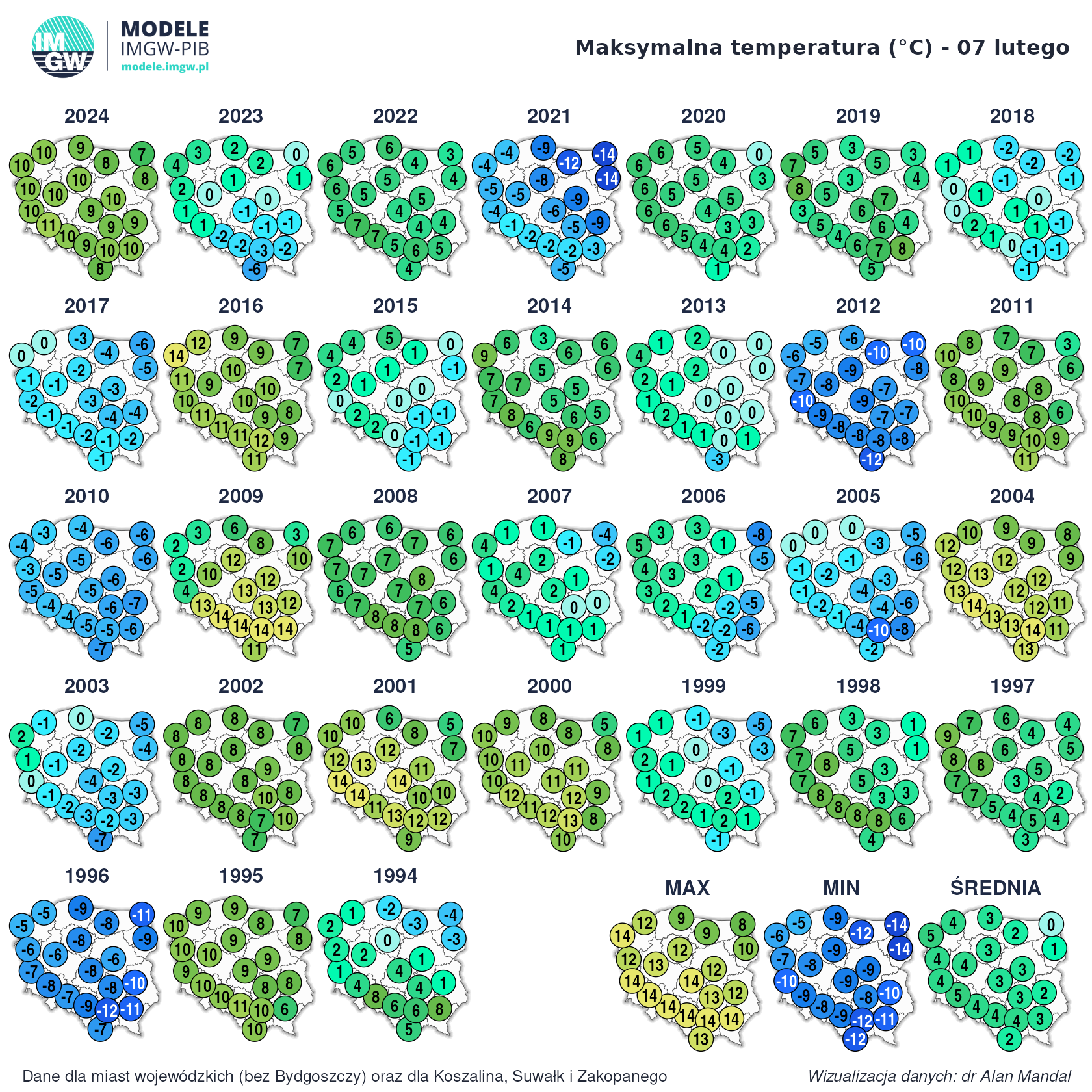 Janekl - 19 Styczeń 2025, 15:00 Ta maksymalna temperatura z 2007 roku w Gdańsku 13 stopni a u mnie zaledwie 8 stopni to jednak duża różnica. Z resztą nie mogę się sugerować Gdańskiem bo dużo razy mam całkiem inną temperaturę chociażby też 2015 rok u mnie maksymalna -2,2*C a Gdańsk +2 stopnie.Bartek617 - 19 Styczeń 2025, 17:30 No okolice Gdańska mogą mieć duży rozrzut temp., podobny lub chyba nawet nieco większy od miast wojewódzkich południowej Polski. LukeDiRT - 1 Luty 2025, 06:25 1 lutego