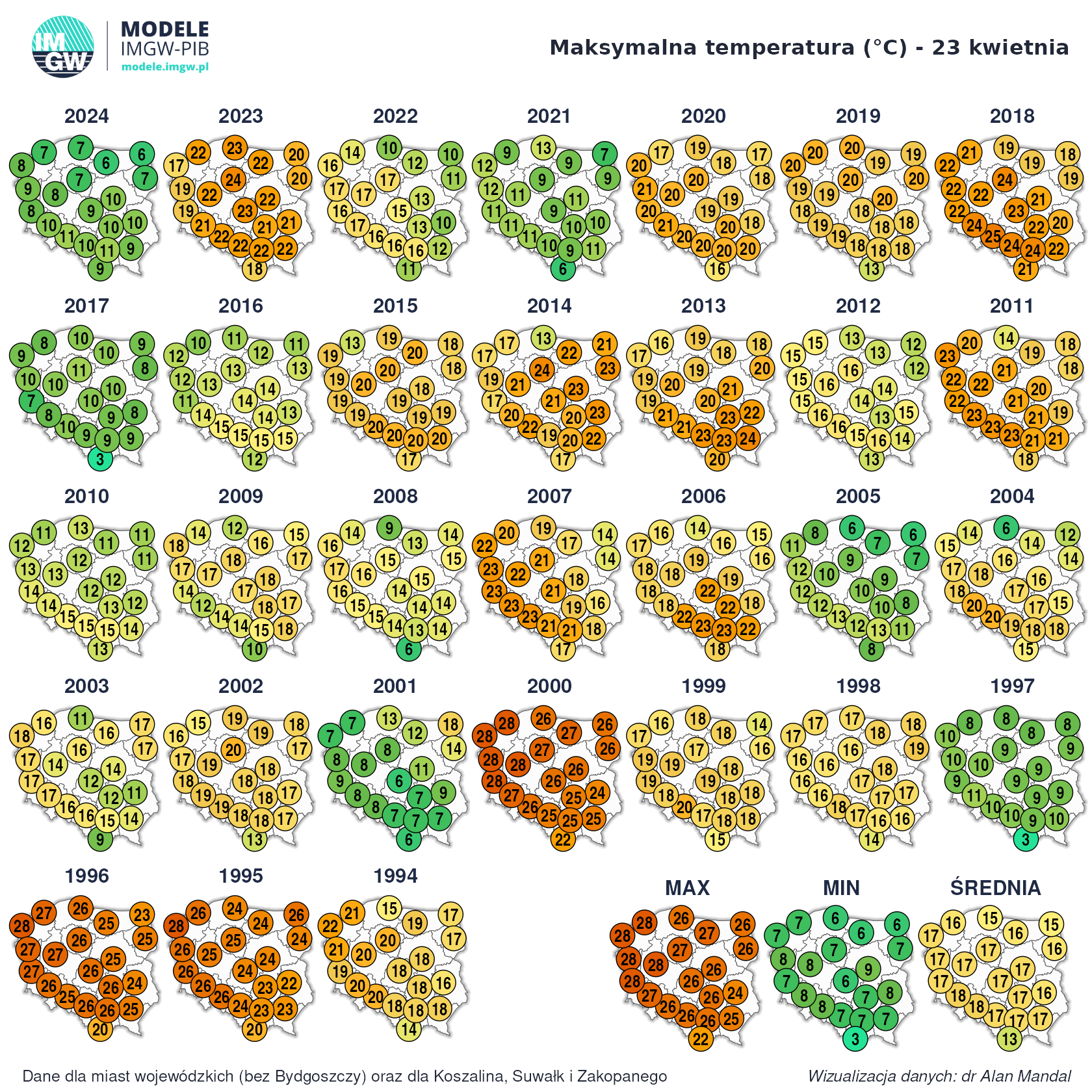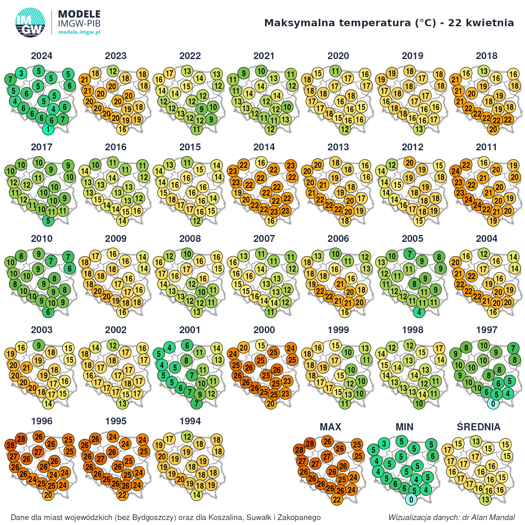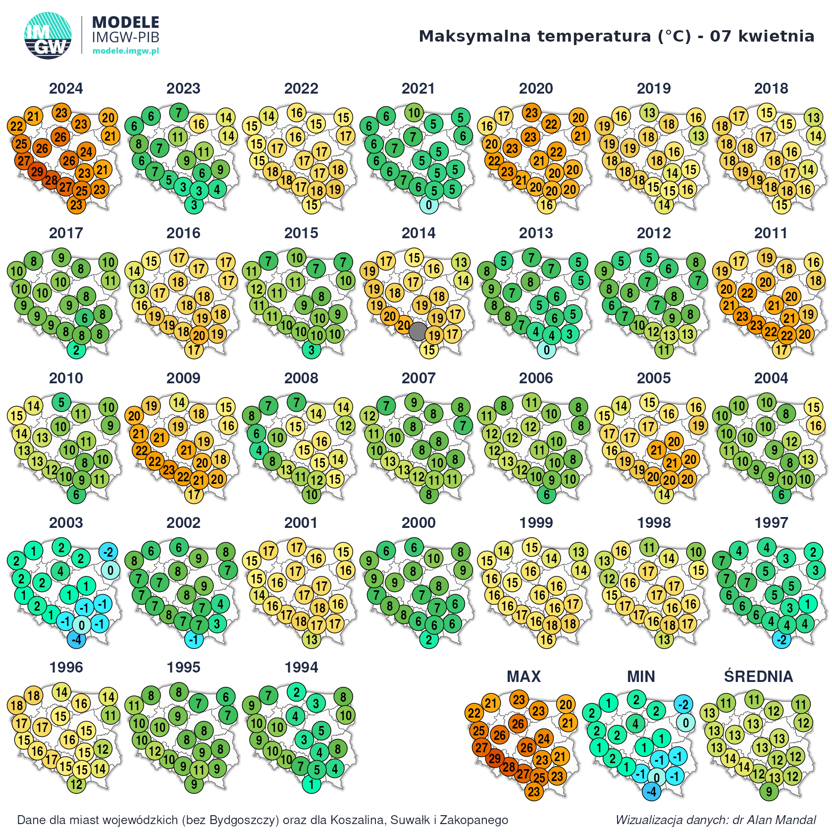 Patrząc na te wyniki to najzimniej jest w XXI wieku a w XX wieku było dużo cieplej. Aż trudno w to uwierzyć.Bartek617 - 7 Kwiecień 2025, 12:42 Jeśli się tylko sugerujemy rekordami i antyrekordami, to może i tak Ale kilkanaście C mrozu się nie pojawiło, a przy takiej adwekcji powinno- zawsze musi być to zejście do okołozerowego szamba z możliwą wilgocią dla urozmaicenia Chociaż może jakieś lokalne zastoiska mrozowe odnotowały temp. nocne poniżej -10 C- wszystko możliwe. A prognozy na przyszły tydzień bardzo źle wyglądają- z deszczu pod rynnę praktycznie... LukeDiRT - 22 Kwiecień 2025, 12:36 22 kwietnia