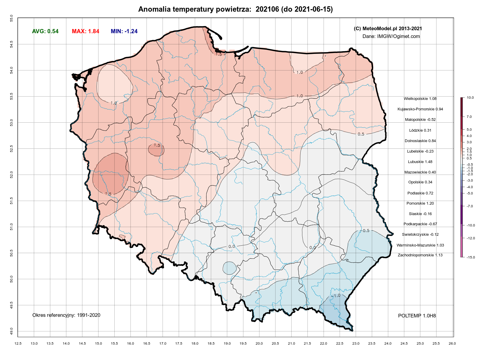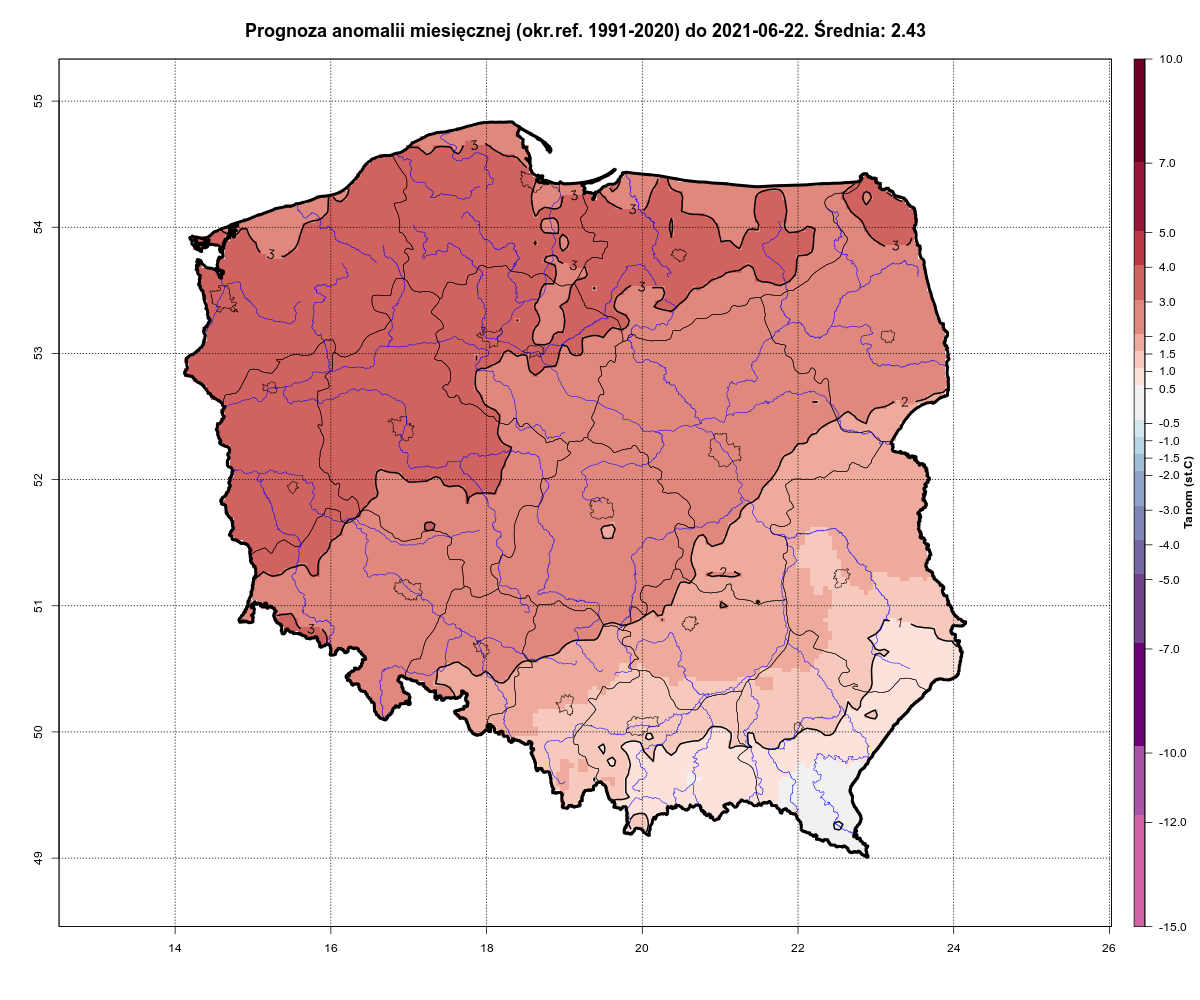O to się raczej nie musisz martwić Jacob - 15 Czerwiec 2021, 19:23 Ale taką tavg z prawdziwie majowym wyżem to poproszę kmroz - 16 Czerwiec 2021, 15:04 Czerwiec jak na razie ma anomalie porównywalną do tych z 2008 i 2013, do niedawna uważanych za bardzo ciepłe, względem nowej normy jednak tylko o około +0.6K wyższych od normy.