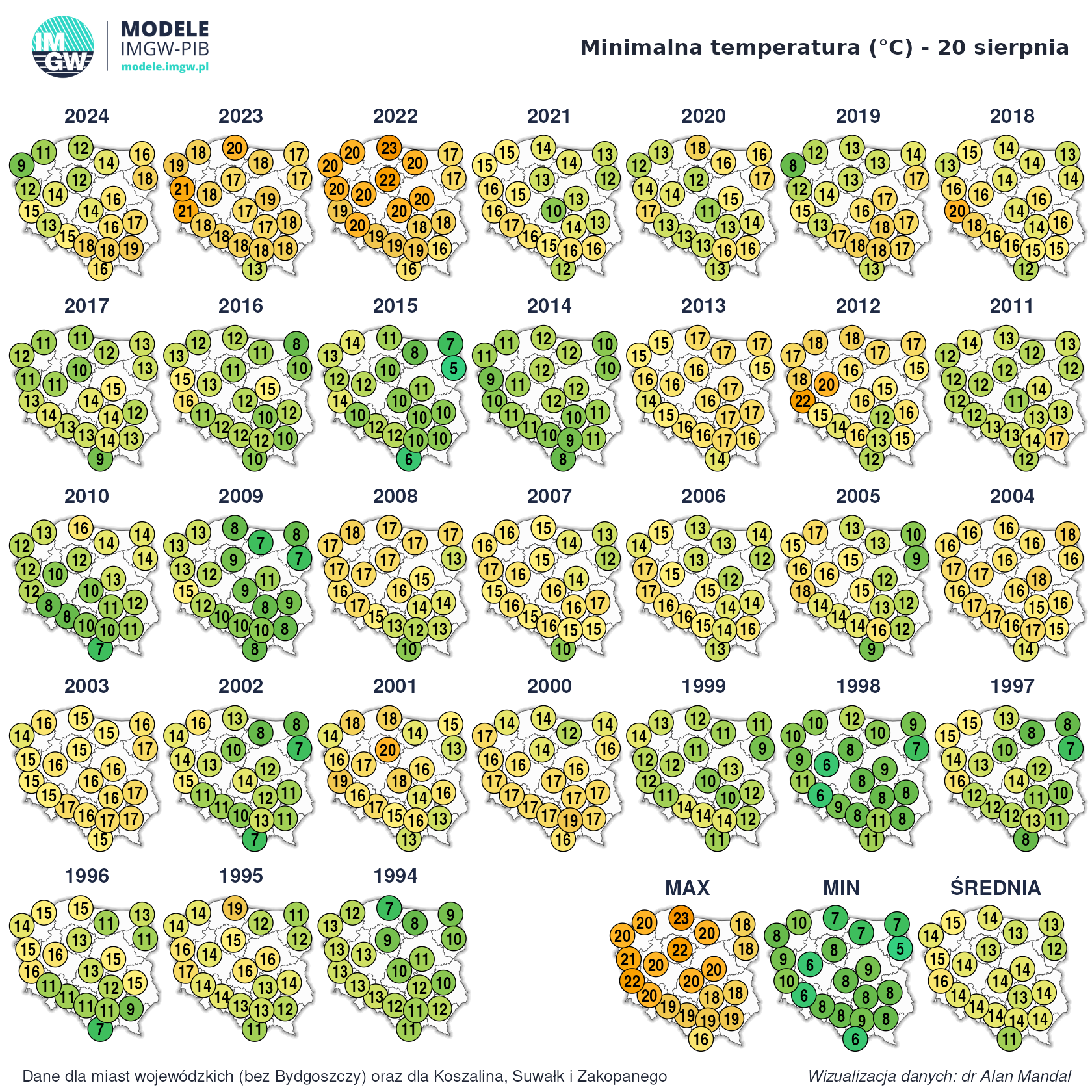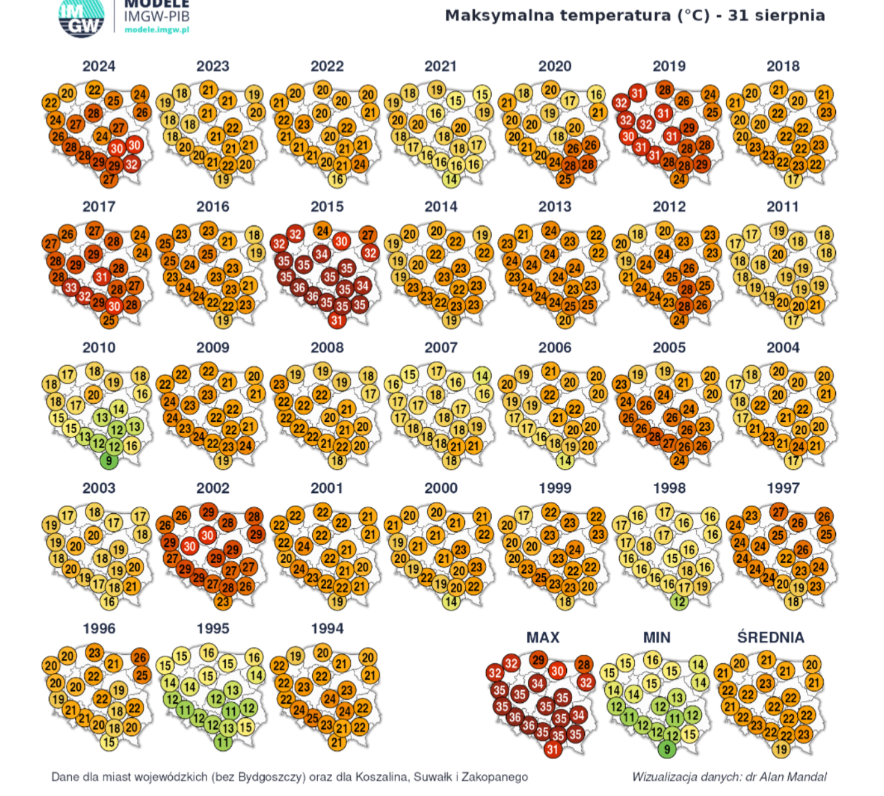 na 2002, 2015, 2017 i 2019 i w mniejszym stopniu na 2*24, ale chociaż wtedy u mnie lekko popadało w nocy przedFKP - 31 Sierpień 2025, 13:28 Najbardziej się ociepliły t. min. w tym dniu. Ogólnie Globcio w pierwszej kolejności noce ociepla i to widać o każdej porze roku, poza wiosną oczywiście LukeDiRT - 31 Sierpień 2025, 15:06 Z kolei ostatni dzień sierpnia w 2010 roku to było jakieś totalne nieporozumienie Jacob - 31 Sierpień 2025, 15:29 Chciałbym takiego za rok