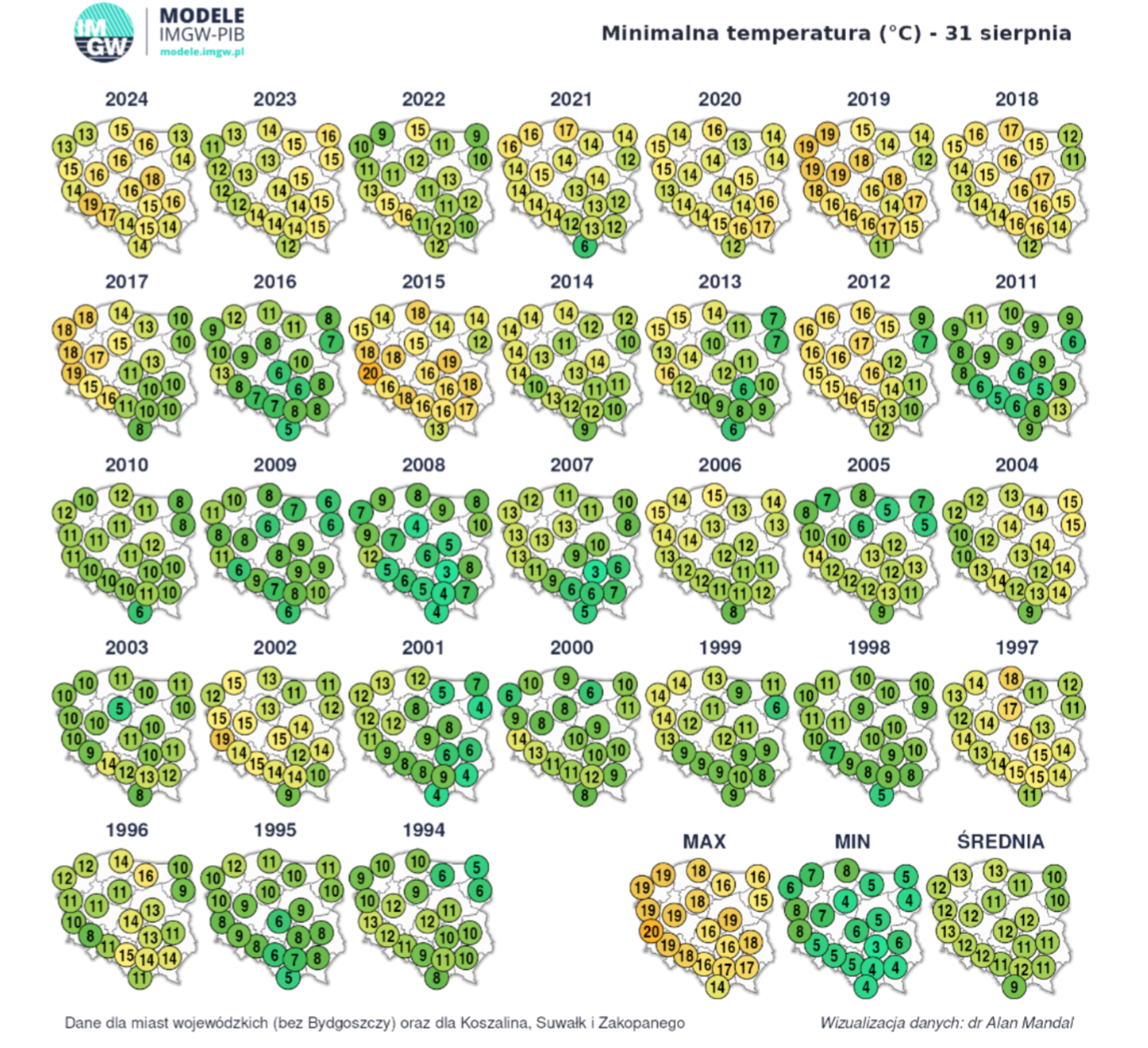 Temp. min. Jacob - 31 Sierpień 2025, 13:03