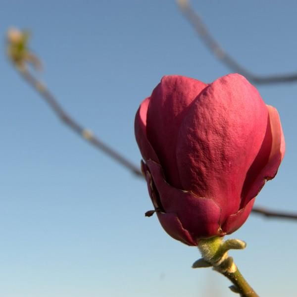 Krzew lub drzewo dość szczupłe, kilka metrów wysokości. Kwiaty o niezwykłym kolorze, takim buraczkowym, lekko pachną. Kwitnie w kwietniu (czasami nawet od marca) i sraju, mniej obficie przez resztę sezonu. To m. soulgeana x m. liliflora "Nigra". Bardzo db odmiana