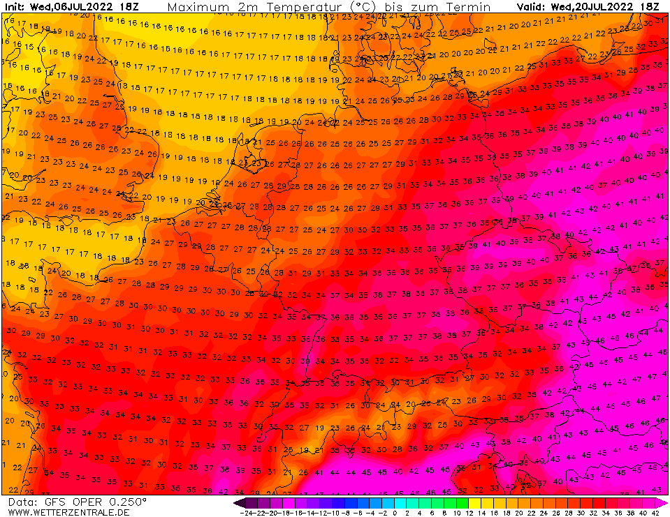 LukeDiRT - 6 Lipiec 2022, 19:52 Wieczorny GFS z odsłony 12z widzi 40 stopni... w Katowicach