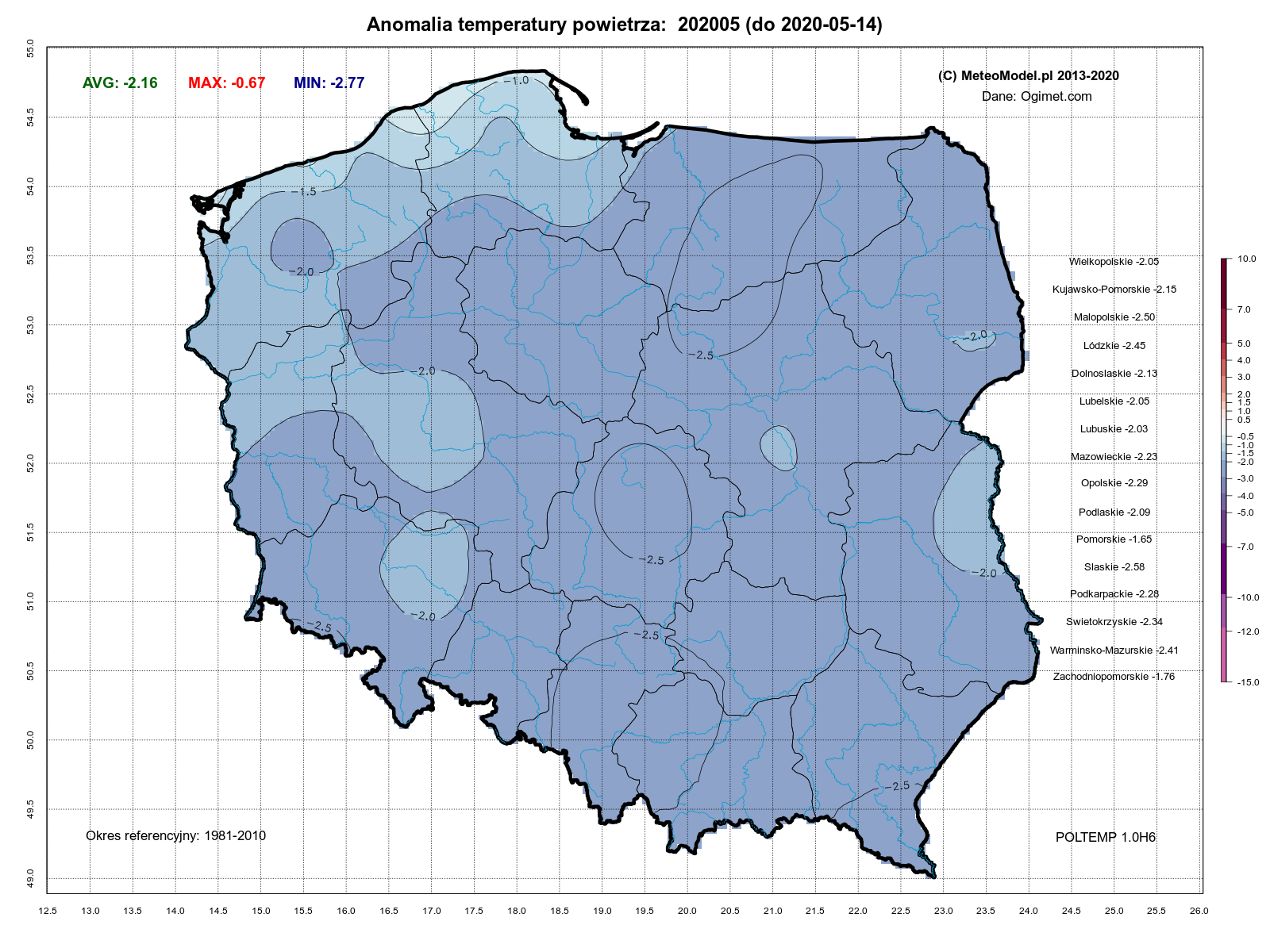 Deszcze od niedzieli cieszą, ale zdecydowanie za zimno jak na maj. Chociaż prawdę mówiąc tragedii nie ma.jorguś - 15 Maj 2020, 14:21 No trochę za chłodno, tak miesiąc wcześniej to by było super ;dkmroz - 15 Maj 2020, 17:47 Ciekawe jaka anomalia będzie do 20.05?