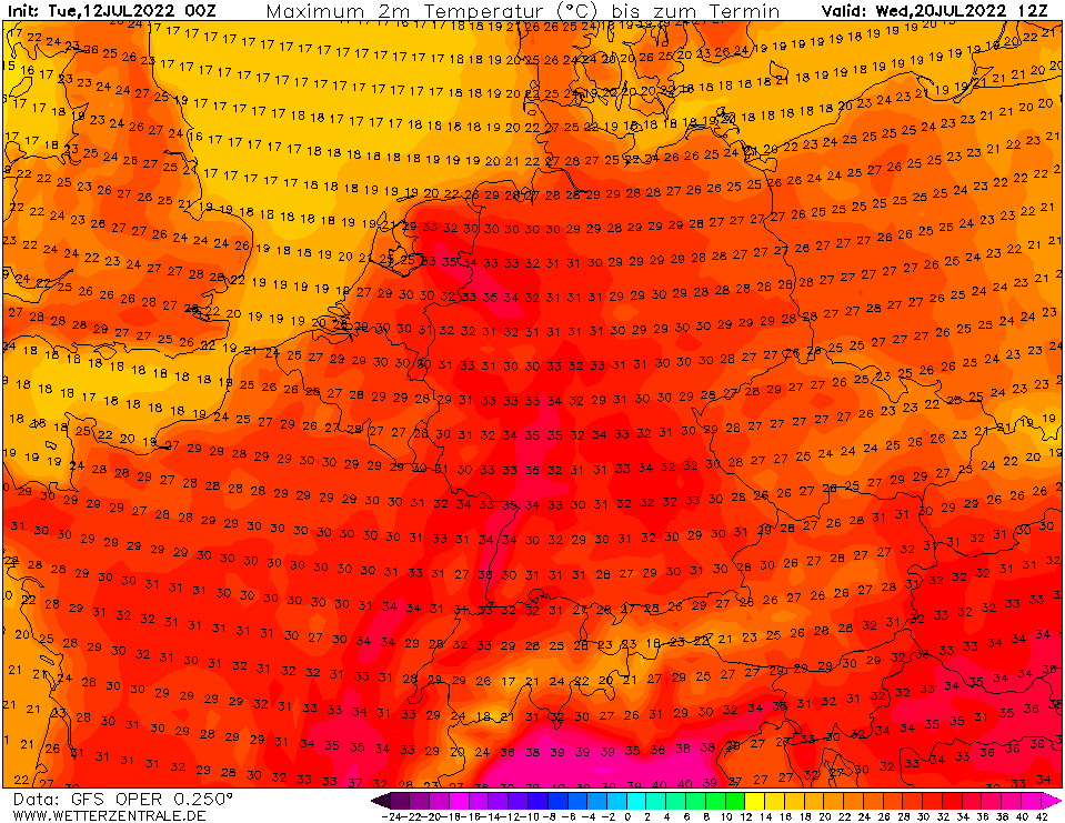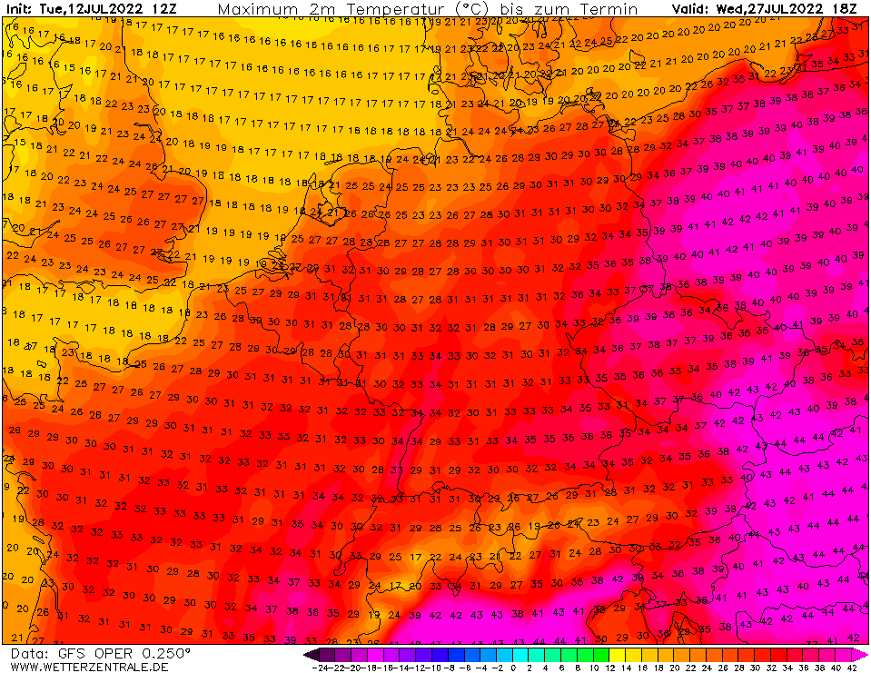 Nie żebym narzekał, dla mnie wystarczy przedział temperatur 24/25 - 29/30 st (pod warunkiem, jeśli jest sucho i słonecznie), ale przy takiej sytuacji barycznej trzeba też patrzeć na całą Polskę. Najgorzej będą mieć mieszkańcy Suwałk Bartek617 - 12 Lipiec 2022, 10:39 Mi się taki układ temp. podoba- im bardziej na zachód, tym na ogół cieplej, więc raczej wyczuwam tu "ładną pogodę". jorguś - 12 Lipiec 2022, 13:14 Tu się nie da nic innego niż skomentować najpopularniejszą emotką forum FKP - 12 Lipiec 2022, 13:29 Najpopularniejszą emotką to chyba jednak jest LukeDiRT - 12 Lipiec 2022, 19:49 GFS znowu odwala cyrki. Tym razem 40 stopniowe wartości zostały przesunięte na sam koniec fusów długoterminowych.