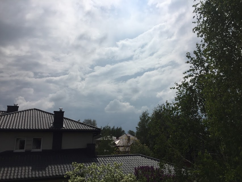 Była to burza krótka i nie padło zbyt długo, spadło prawdopodobnie około 5mm (niestety nie dowiem się dokładnie, bo dane z Pruszkowa obejmują całą dobę od 8:00 do 8:00, a więc suma dobowa obejmuje także kolejny poranek). Wg stacji odległej nieco na południe, bliżej mojej działki, spadło aż 8mm.