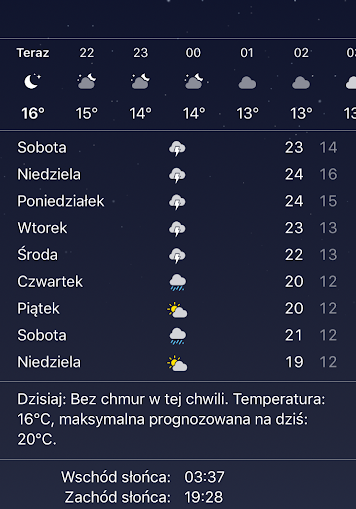No i prognoza aplikacji ajfonowej na kolejne dni, czyli w skrócie codzienne burze ♥