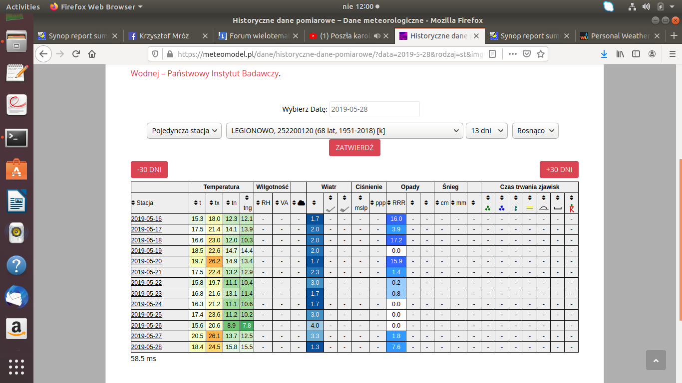 Wieczorem tego dnia udałem się na juwenalia, ale to już swoją drogą, tak czy inaczej był to ciepły i raczej już pogodny wieczór. Przed północą jednak temperatura zdołała spaść do około 13 stopni, co było wartością niższą, niż nad ranem.