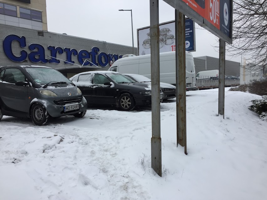 Rano tego dnia wybrałem się na uczelnie, marnując 4 godziny swojego życia - poszedłem na laboratoria z przedmiotu, który i tak potem olałem.... Ale dzięki temu przynajmniej zrobiłem zdjęcie tego "ataku zimy" jak wyglądał na bardziej zurbanizowanym terenie: