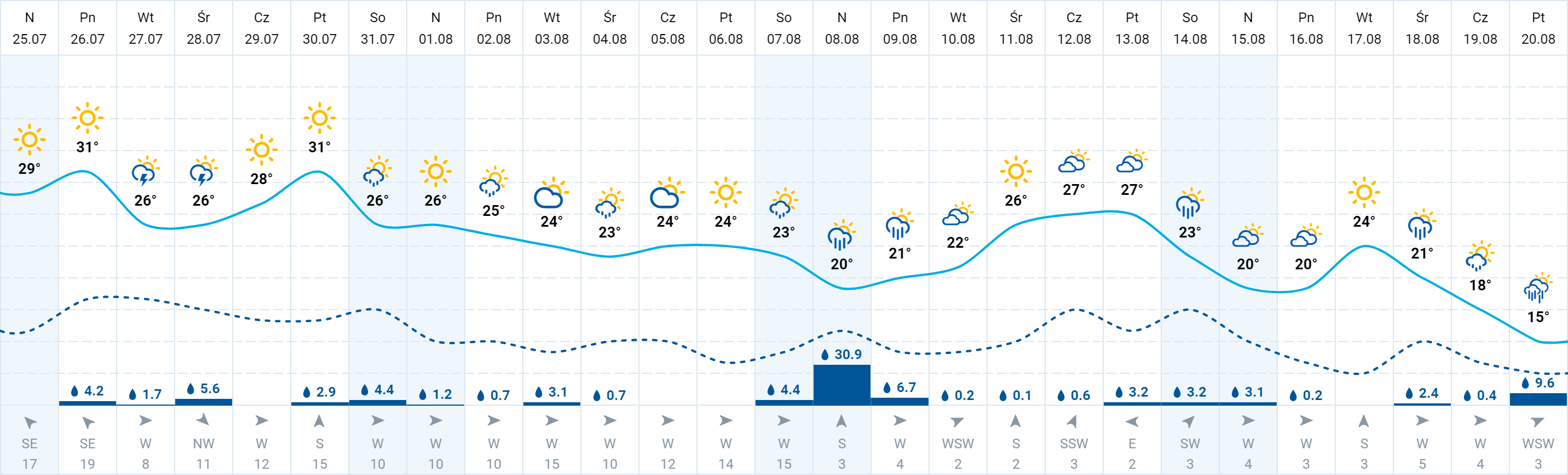 Zapytanie wprost paradoksalne. Temperatury powyżej +20 stopni to miałby być ekstremalny chłód Chyba tylko dla diabłów obsługujących kociołki piekielne. Ale to tylko postacie mitologiczne PiotrNS - 24 Lipiec 2021, 23:19 Na razie początek sierpnia jest za daleko, by móc snuć jakieś wiarygodne prognozy na jego początek - najwyżej coś "około". A temperatura niewiele ponad 20 stopni może być w tym okresie dużą ujemną anomalią jeśli temperatury będą uzupełnione przez zimne noce z jednocyfrowymi temperaturami minimalnymi. Na początku sierpnia normy są bardzo wysokie.FKP - 24 Lipiec 2021, 23:47