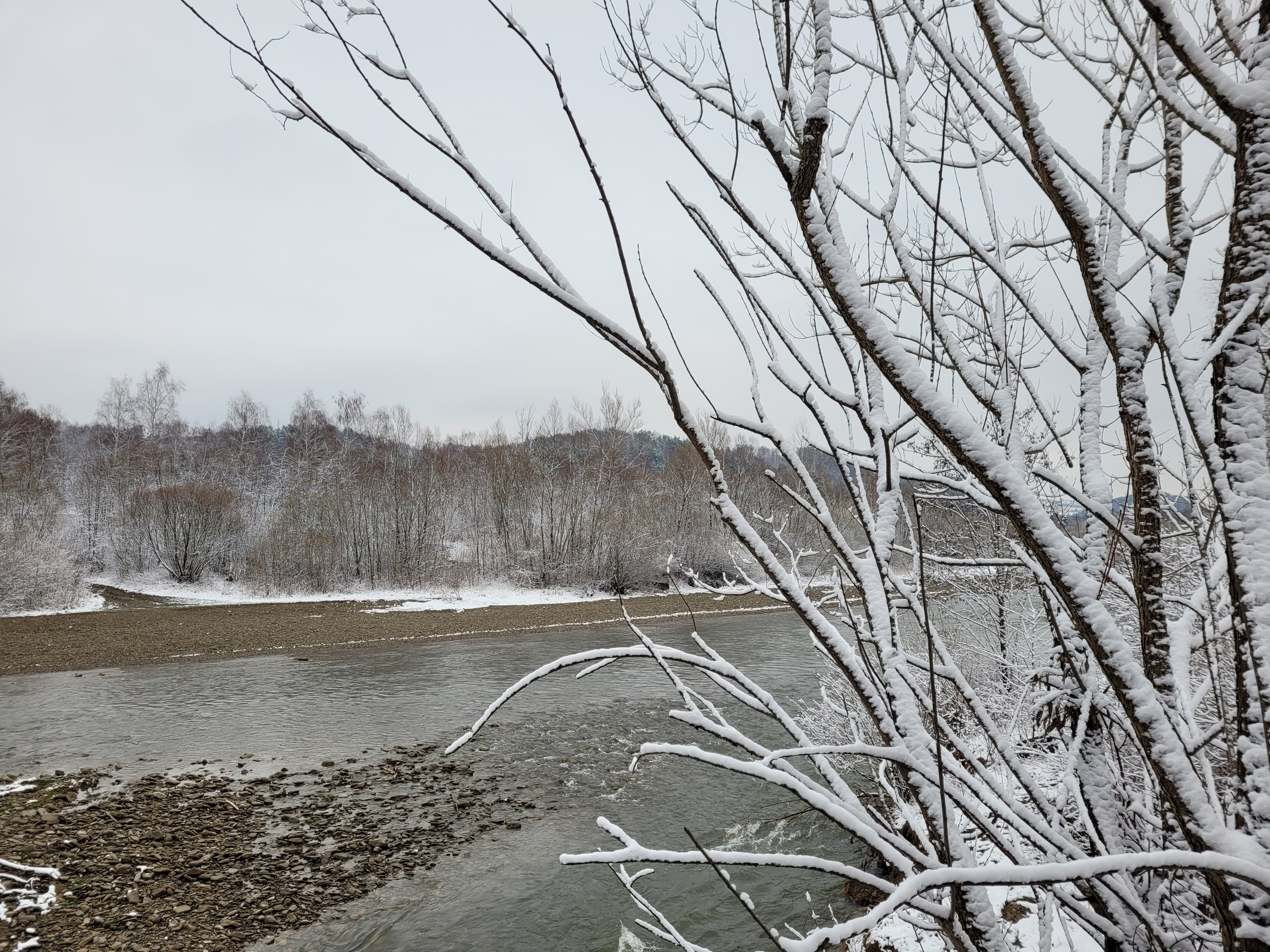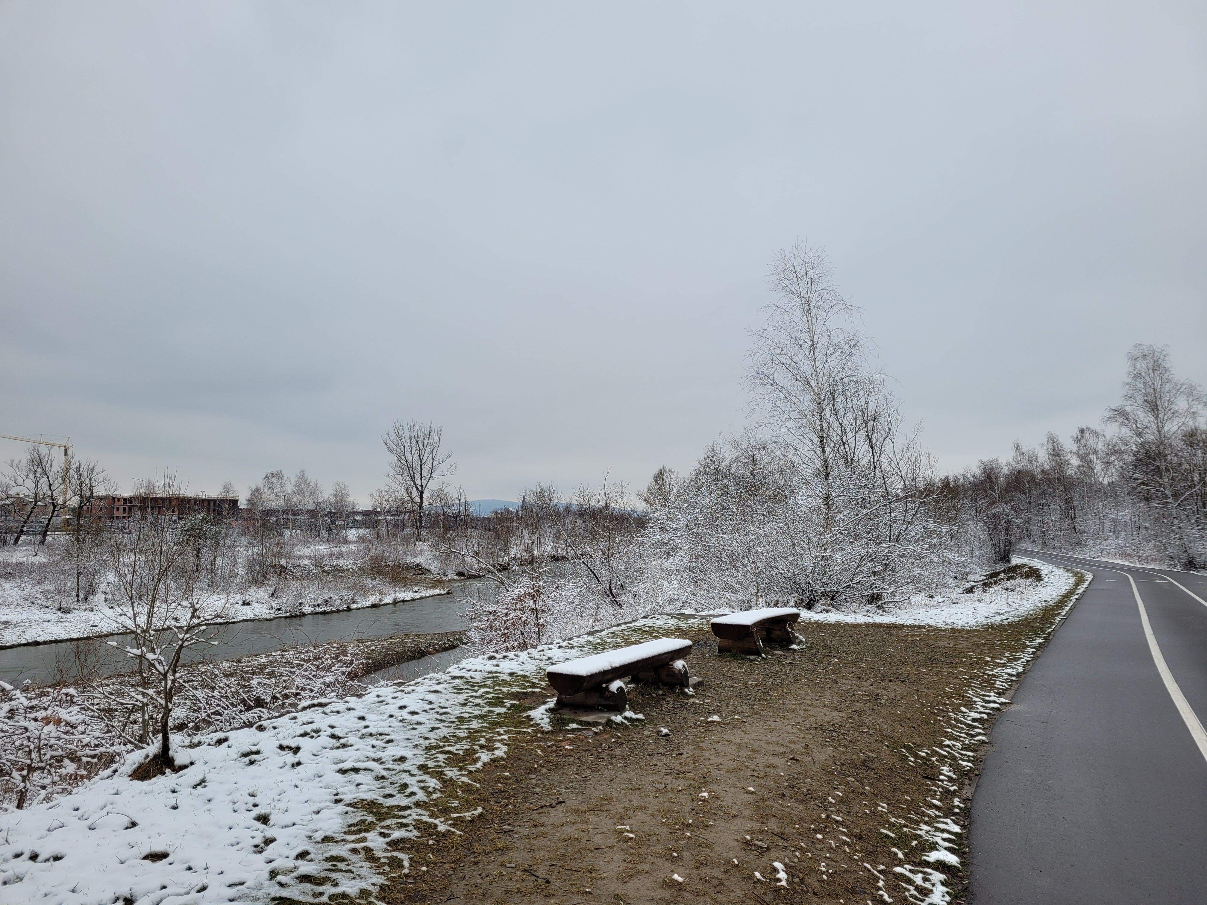 To dzisiejsza zima z mojej perspektywy Wracając z miasta do domu w ten (całkiem lub niemal) całodobowo mroźny dzień, drugi najzimniejszy 2 kwietnia w historii, poszedłem okrężną drogą, aby więcej zobaczyć. Może śniegu nie jest dużo, ale pięknie oblepia drzewa i prezentuje się bardzo estetycznie - nie śmiałbym narzekać na taką minimalną pokrywę w noc wigilijną 2021, ale wtedy byli pastuszkowie