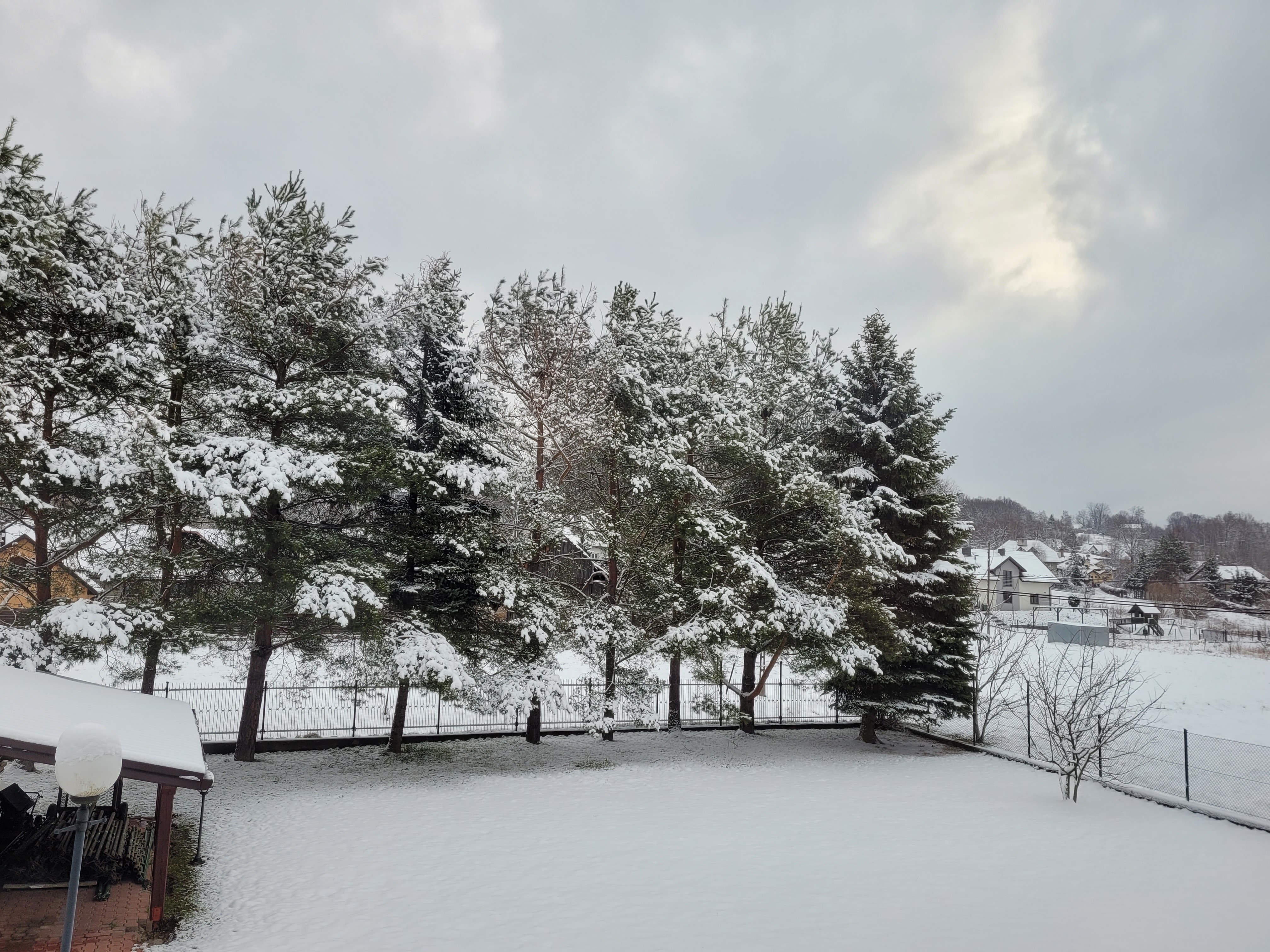 Było, ponieważ w nocy nasypało ok. 4 cm 😍 Prawdziwa bielusia magia, śnieg jest pulchny, mokry i wszystko oblepia. Takich widoków nie było od stycznia, a także (wiem, ból czterech liter) w Święta Bożego Narodzenia I dekada kwietnia znowu przyciągnęła lepszą zimę niż ten okres w kalendarzu. Ale i tak się cieszę. Jest -1 stopień.