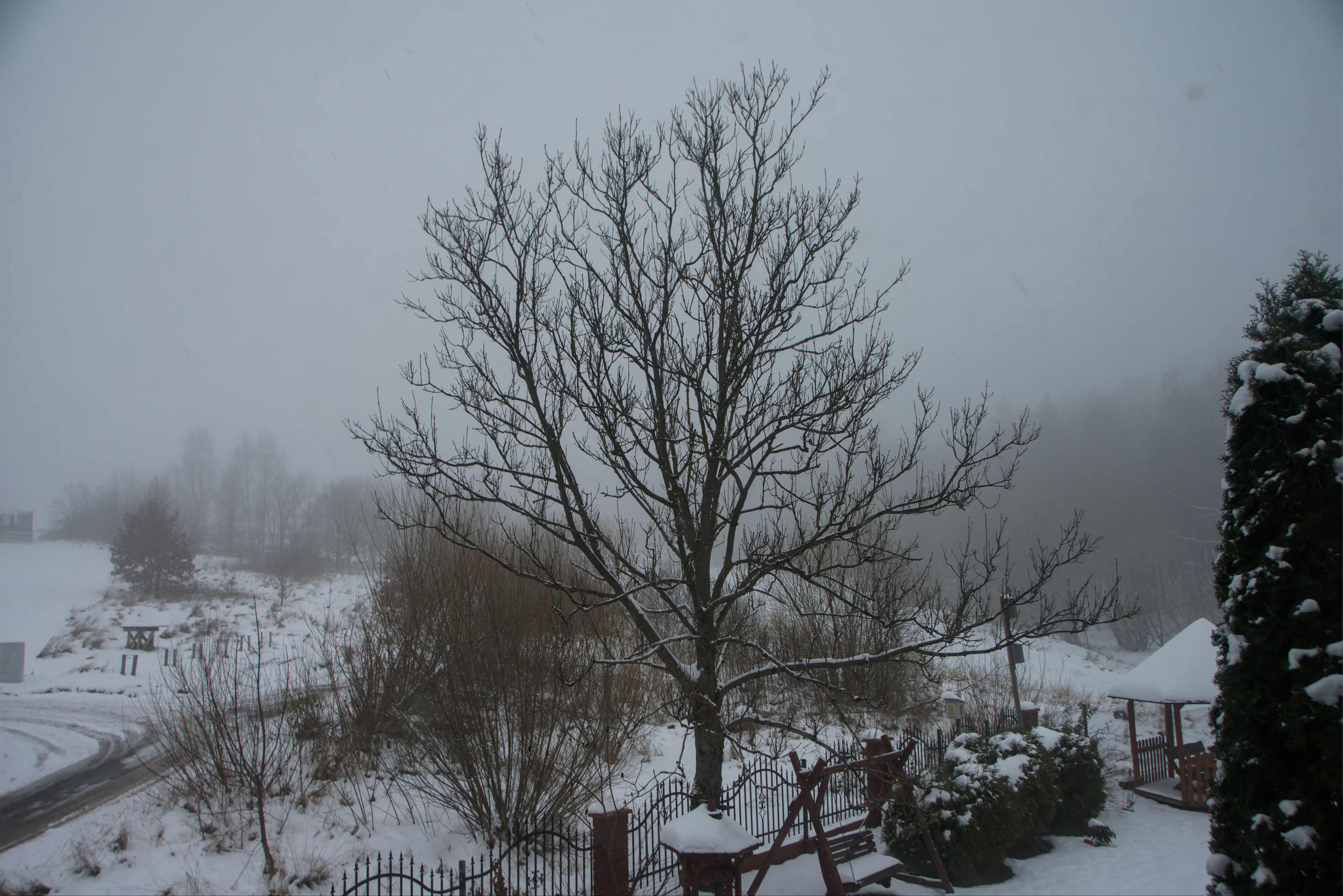 https://www.mtwetter.de/m...2&datum=1980-04Bartek617 - 1 Grudzień 2023, 14:00 I teraz wyobraźmy sobie, że suma PŚ za cały miesiąc wychodzi kiedyś podobna do tej z jednego sezonu. No po prostu śniegoluby nie posiadaliby się z radości. PiotrNS - 1 Grudzień 2023, 16:43 Temperatura przeszła przez zero. Jest mróz. Pada dość gęsty, ale jeszcze drobny śnieżek, który ledwo zabiela niezaśnieżone obszary. To początek długiej nocy, nocy o której długo nie zapomnę (jeśli w ogóle).