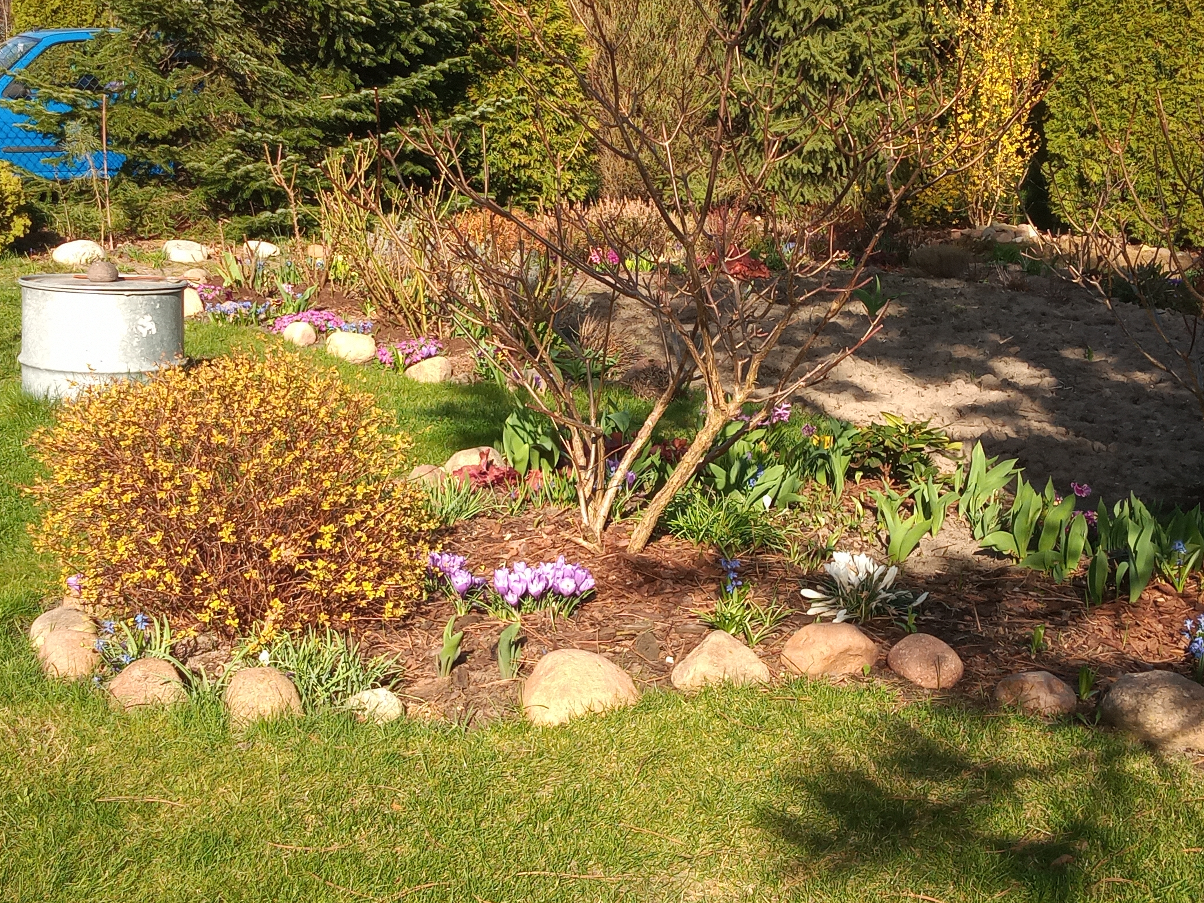 Na klombie też wszystko (za wyjątkiem hortensji) budzi się do życia.