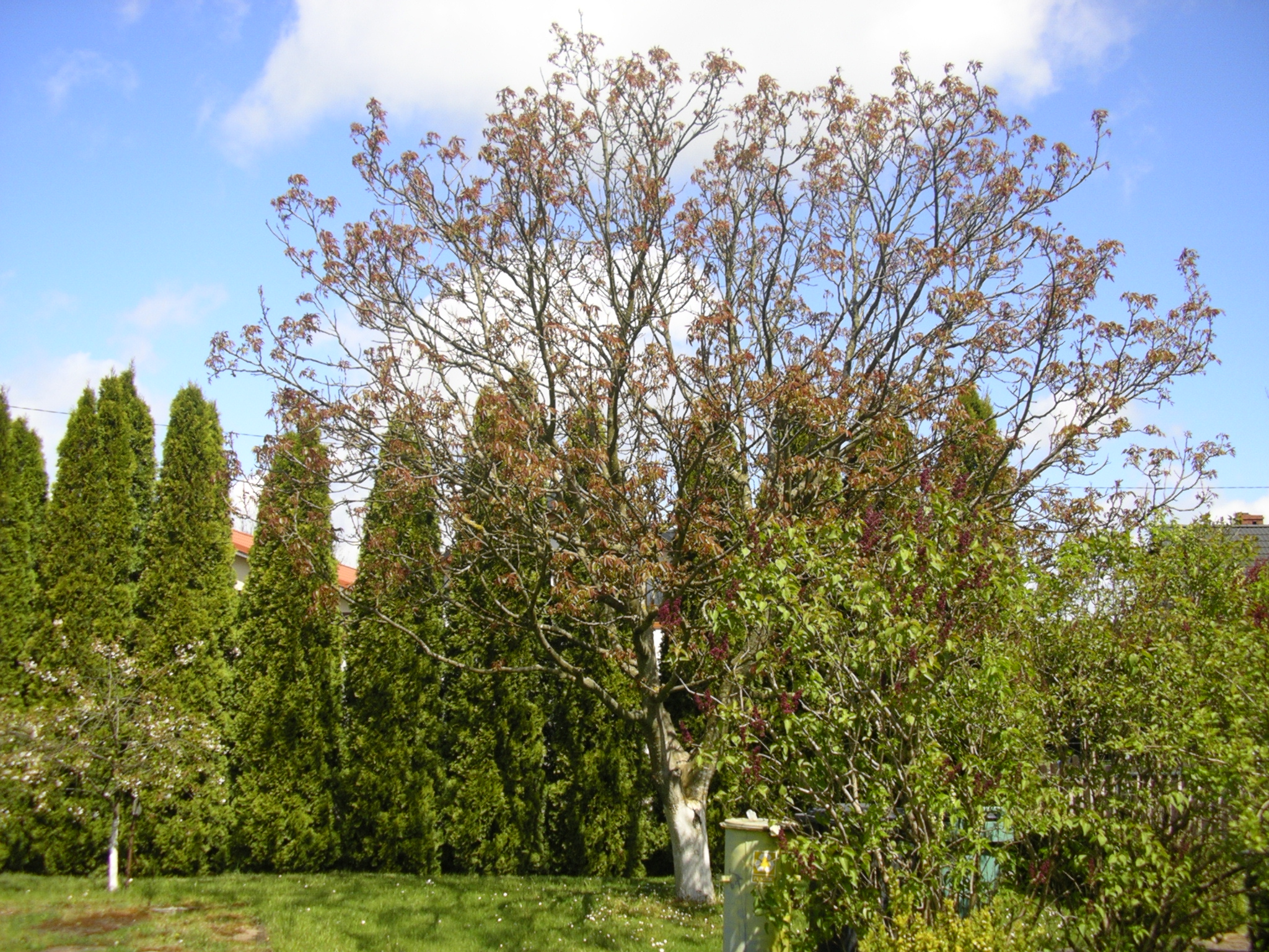 U mnie na ogół drzewa owocowe zaczynają kwitnąć zawsze w maju choć ostatnie 3 lata wyjątkowo jeszcze pod koniec kwietnia. Już w czerwcu u mnie drzewa mają liście chociaż orzechowi włoskiemu czasami zdarza się ale gdy pierwsze liście dostaną przymrozek to przymarzną i liście rosną od nowa . A tak to wygląda u mnie obecnie a właściwie 2 dni temu zdjęcia zrobione. Pierwszy orzech włoski.