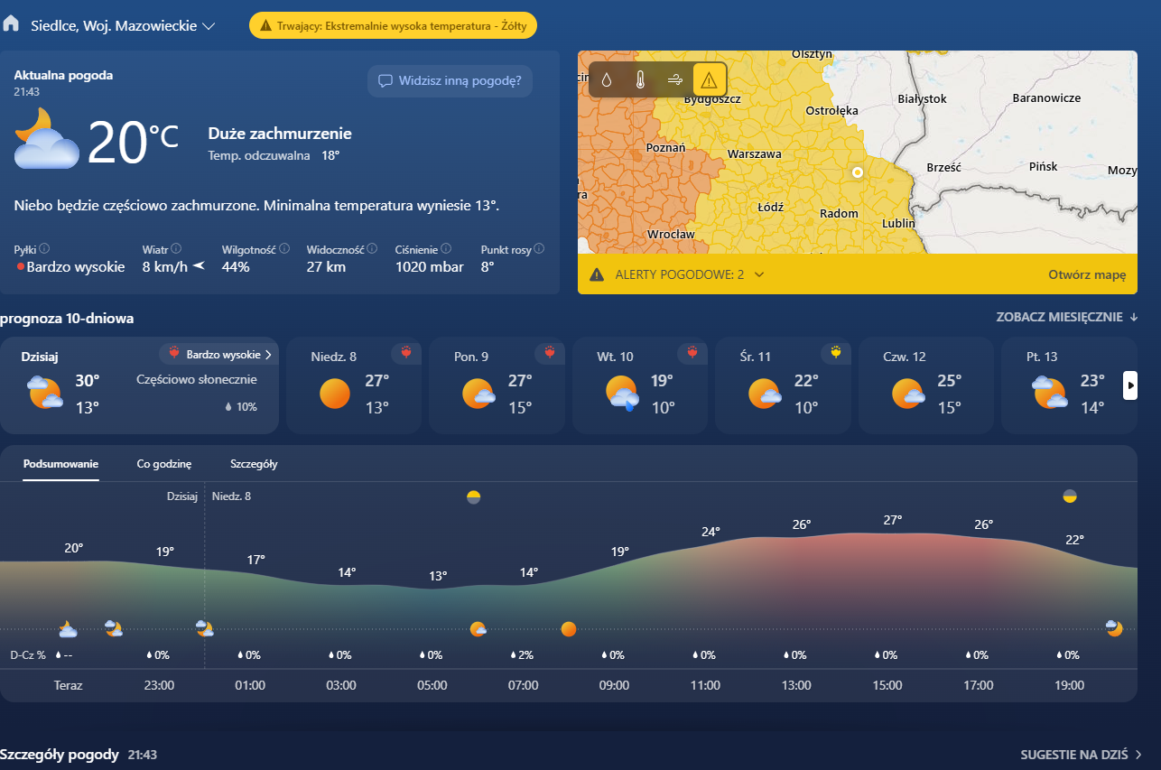 Ale szczęściarz z Ciebie.Janekl - 7 Wrzesień 2024, 20:03 Kolejna ciepła noc z zapachem z grilla i muzyką disco polo . Obecnie jest 20,8*C i prawie bez wiatru. Wilgotność 60%.zgryźliwy tetryk - 7 Wrzesień 2024, 21:48 https://www.msn.com/pl-pl...5490d943c&ei=35Janekl - 8 Wrzesień 2024, 09:51 Zachmurzenie małe i już 21,4*C a już od jutra normalność szkoda ,że tego ciepełka nie będzie dłużej.