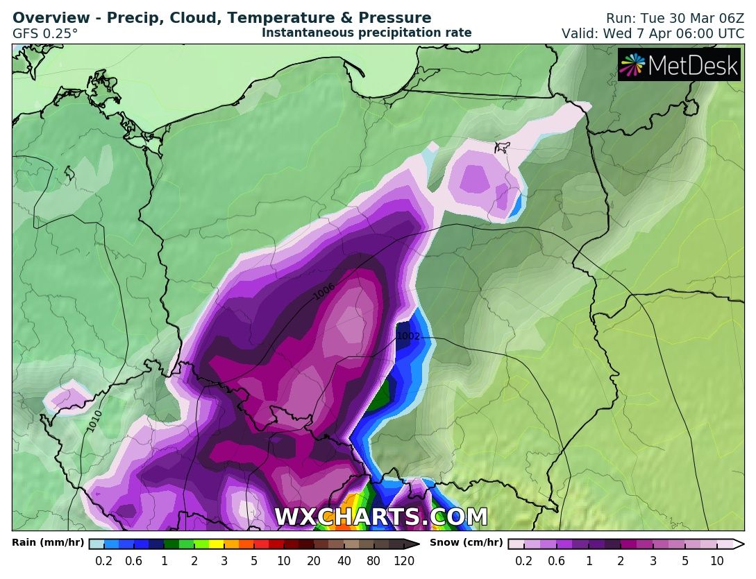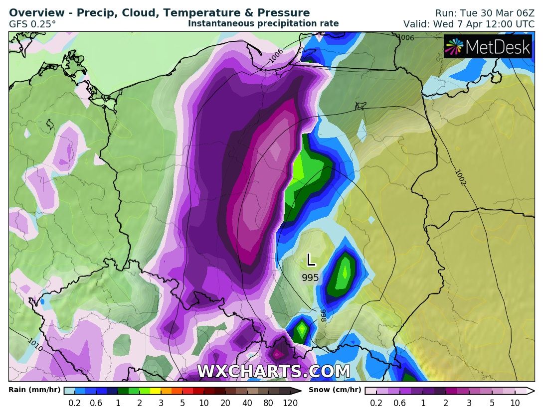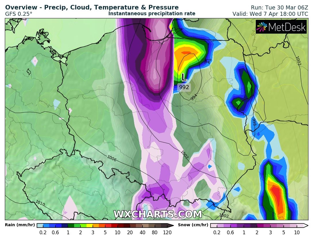 #2021roktotrollpotatusiukmroz - 30 Marzec 2021, 13:06 Wariactwa w prognozach ciąg dalszy. Ciekawe, czy coś z tego zostanie, ale upór GFS-a sięga zenitu. Mam tylko nadzieje, że jeśli coś zmieni, to podwyższy temperaturę, a samego genuana z dużymi opadami jednak pozostawi