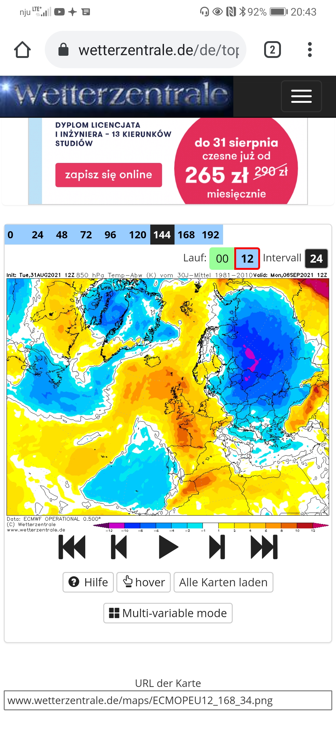 kmroz - 31 Sierpień 2021, 20:51 Dobra, to co pokazał teraz ECMWF przebija wszystko... Nie mogę się doczekać jak ta odsłona o 23 trafi na yr.no. Będzie naprawdę ostro...kmroz - 31 Sierpień 2021, 22:28 FKP - 31 Sierpień 2021, 22:39 Nie ma mrozu jeszcze Jacob - 31 Sierpień 2021, 22:41 Taki wrześniowy październik 2010 się szykuję kmroz - 1 Wrzesień 2021, 14:07 Fusy od 9.09 martwią. Po zeszłym roku jest niesamowita trauma, oby tym razem wrzesień oszczędził łajna.Jacob - 1 Wrzesień 2021, 14:13 Ostatnio ECMWF też straszył gównem z tmax 26 st. na 7.09, miejmy nadzieję, że wrzesień od 4.09 będzie miał wyraźną tendencję spadkową