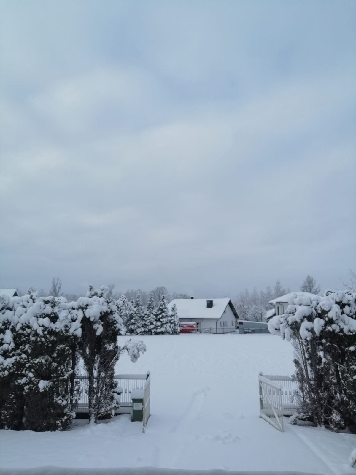 Mam jeszcze jedno zdjęcie, które zrobiłem jeszcze poprzednią komórką, ale o którym sobie przez 2 tyg. zapomniałem: w ogóle ostatnio zmieniłem telefon (na model po Tacie), bo kilku latach użytkowania wyrobiło się gniazdo od ładowania. Prześwitująca nieśmiało przez dziury w balkonie biel wciąż była obecna u mnie (stan na 26 grudnia, trochę przed godz. 12). Ja wiem, że to wszystko jest "na siłę", ale widoki były wciąż odmienne niż przed 10 grudnia lub obecnie.
