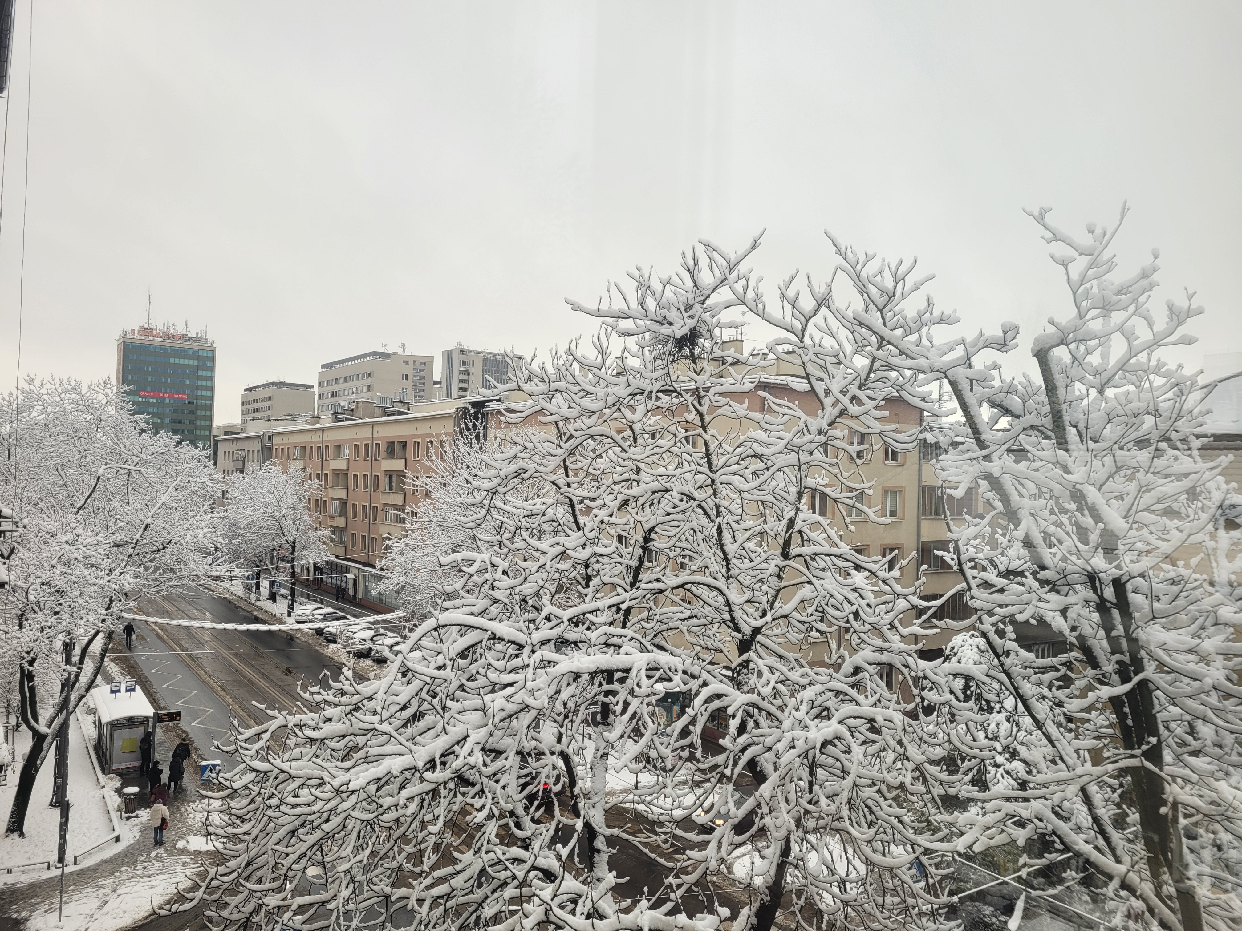 W Krakowie tak bajecznie nie było, bo śniegu mniej i od rana ulica pod moim oknem była już czarna. Sytuację ratowały pięknie oblepione drzewa.