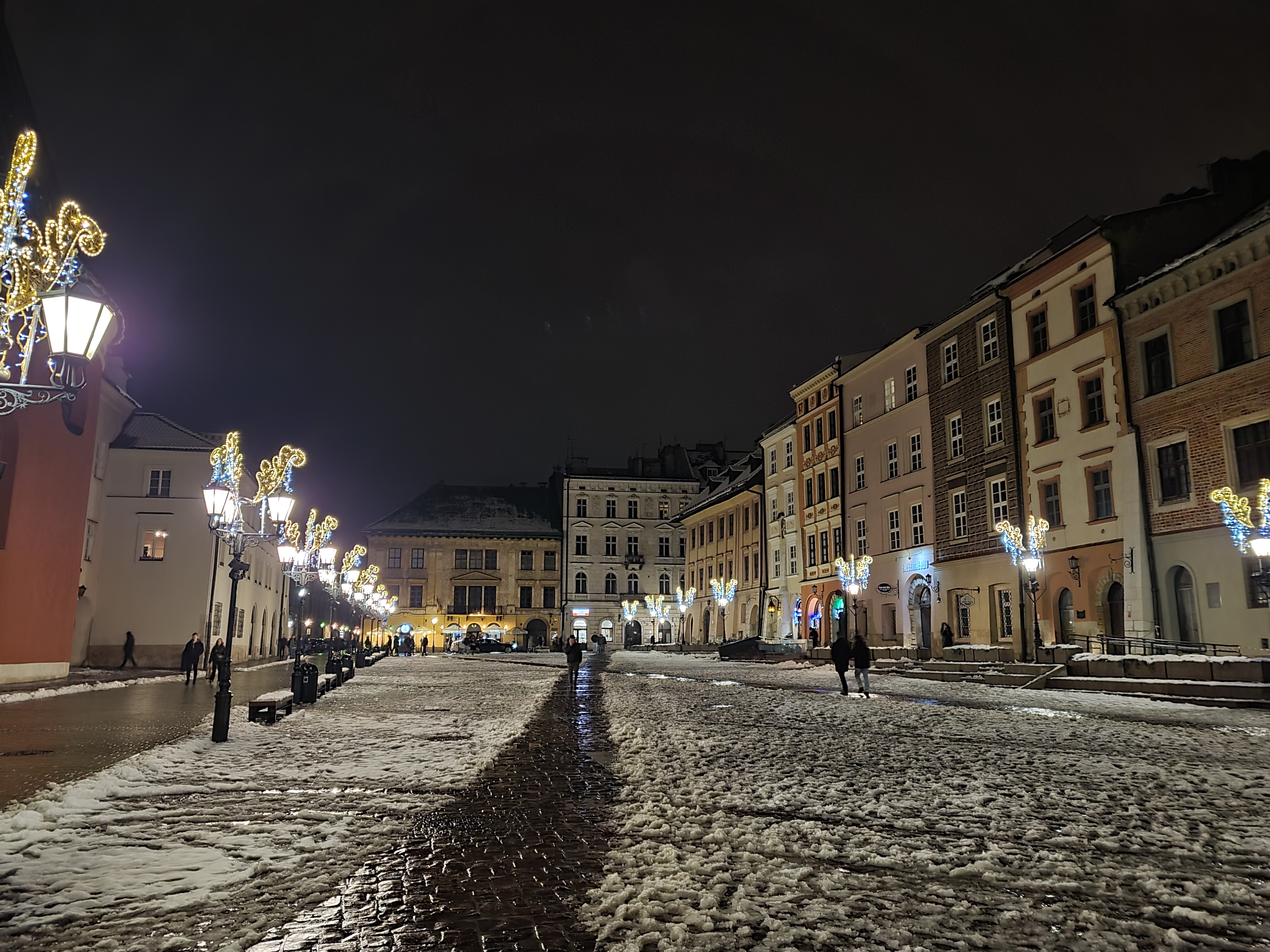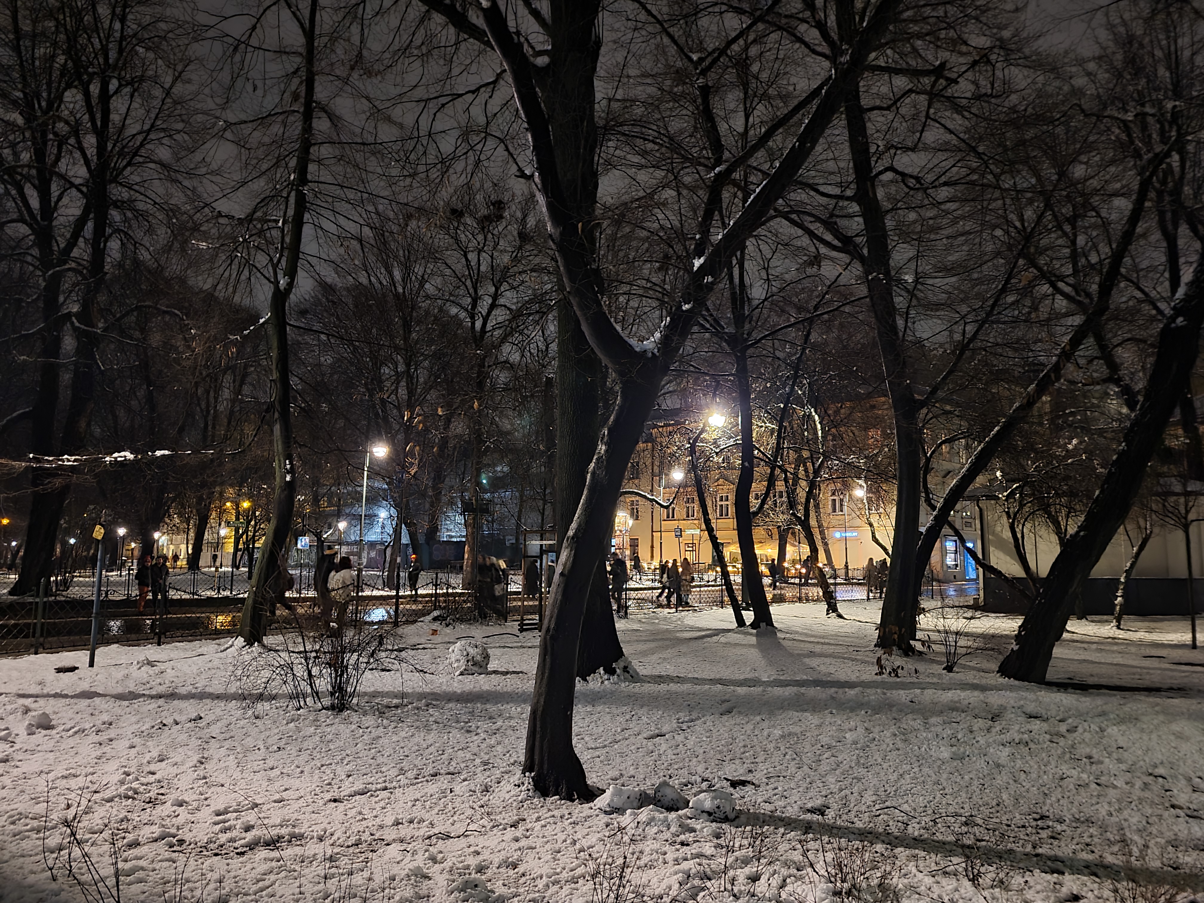 Wieczorem w centrum miasta śnieg jeszcze był, ale przeważnie marnej jakości: