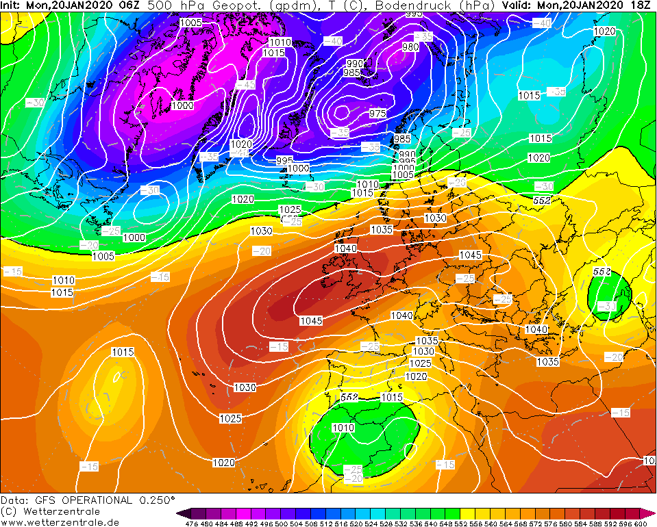 LukeDiRT - 20 Styczeń 2020, 11:01 Oto prognoza ciśnienia z modelu GFS na dzisiejszy wieczór:
