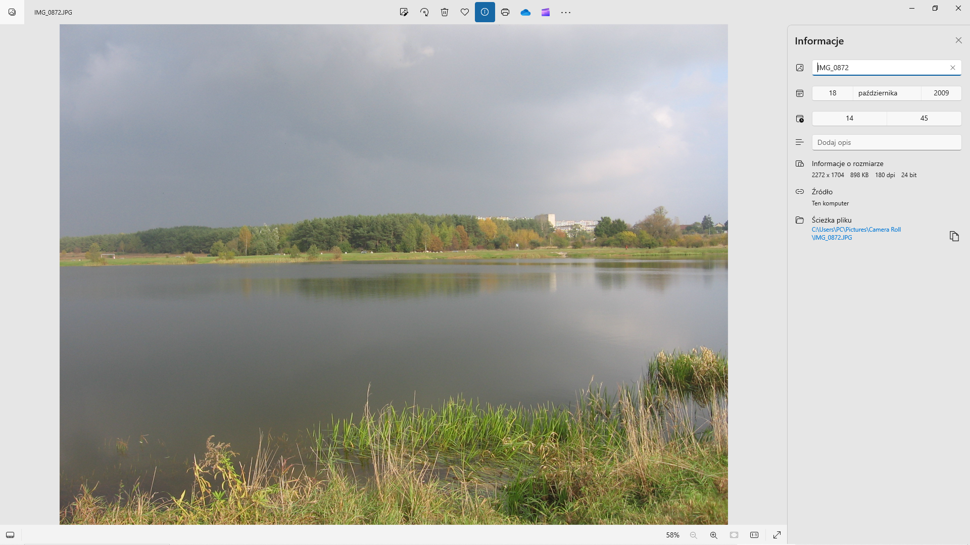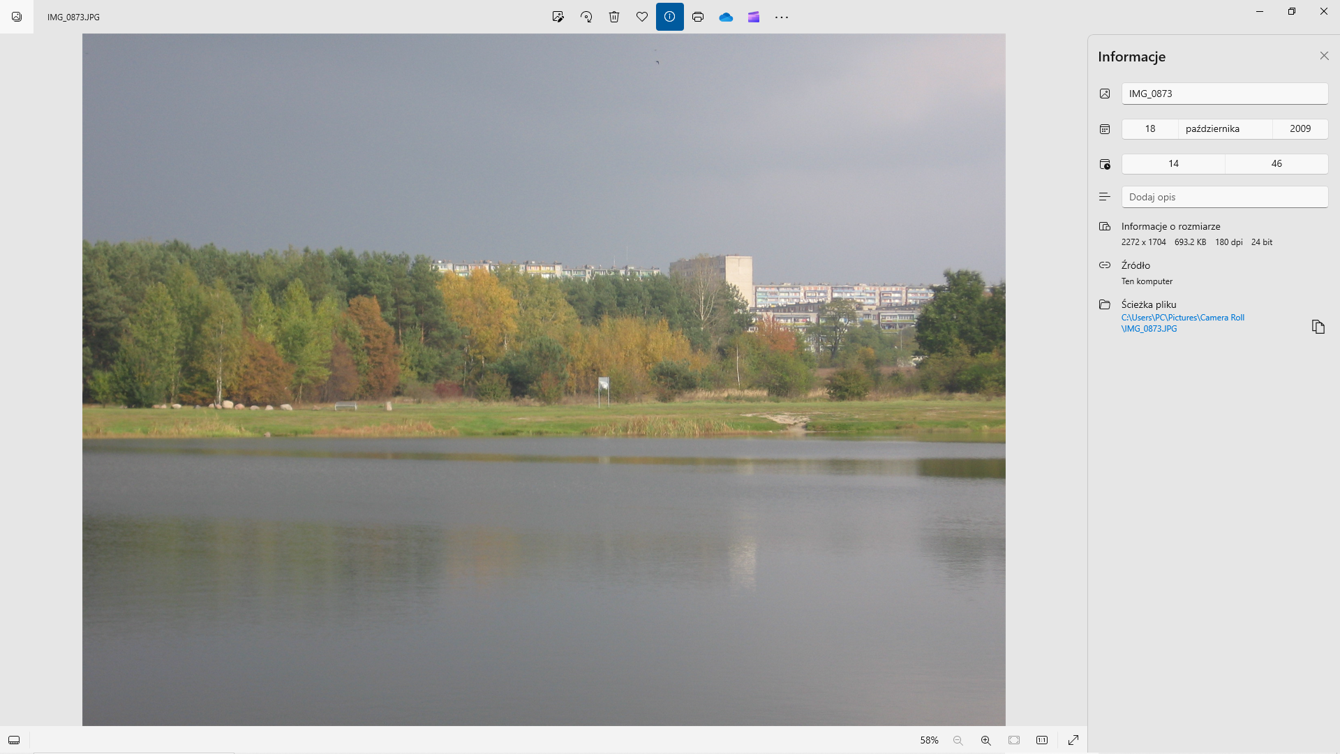 Oto dowód, że ta seria zdjęć została zrobiona 18 października 2009 roku. Prawdziwa złota polska jesień, śniegu ani śladu kmroz - 30 Wrzesień 2024, 16:37 zgryźliwy tetryk, a co ma piernik do wiatraka, śnieg spadł 14.10 na rozgrzany grunt i już dzień później się w większości stopił. Bardzo by było dziwne, jakby po 4 dniach przy tak ciepłym gruncie były jeszcze jakieś ślady po śnieguzgryźliwy tetryk - 30 Wrzesień 2024, 16:53 Mylisz się. Nie neguje, że gdzie indziej spadł. śnieg. Lecz gdyby kilka dni wcześniej była u nas śnieżna, a nawet deszczowa pogoda nie zapraszałbym rodzinki. To fotki ze spaceru nad zalewem. Wielokrotnie się zdarzało, że gdy gdzie indziej było "nieładnie" to u nas pogodnie. Nawet zbyt sucho. W każdym razie u nas w połowie października 2009 roku nie spadła ani jedna śnieżynka.kmroz - 30 Wrzesień 2024, 18:59 zgryźliwy tetryk, ale pogoda zmienia się z dnia na dzień w naszym klimacie przecież. Gdyby "zła pogoda" kilka dni wcześniej uniemożliwiała zapraszanie rodziny, to byś ich nigdy nie zapraszał. Co to wgl za dziwne argumenty