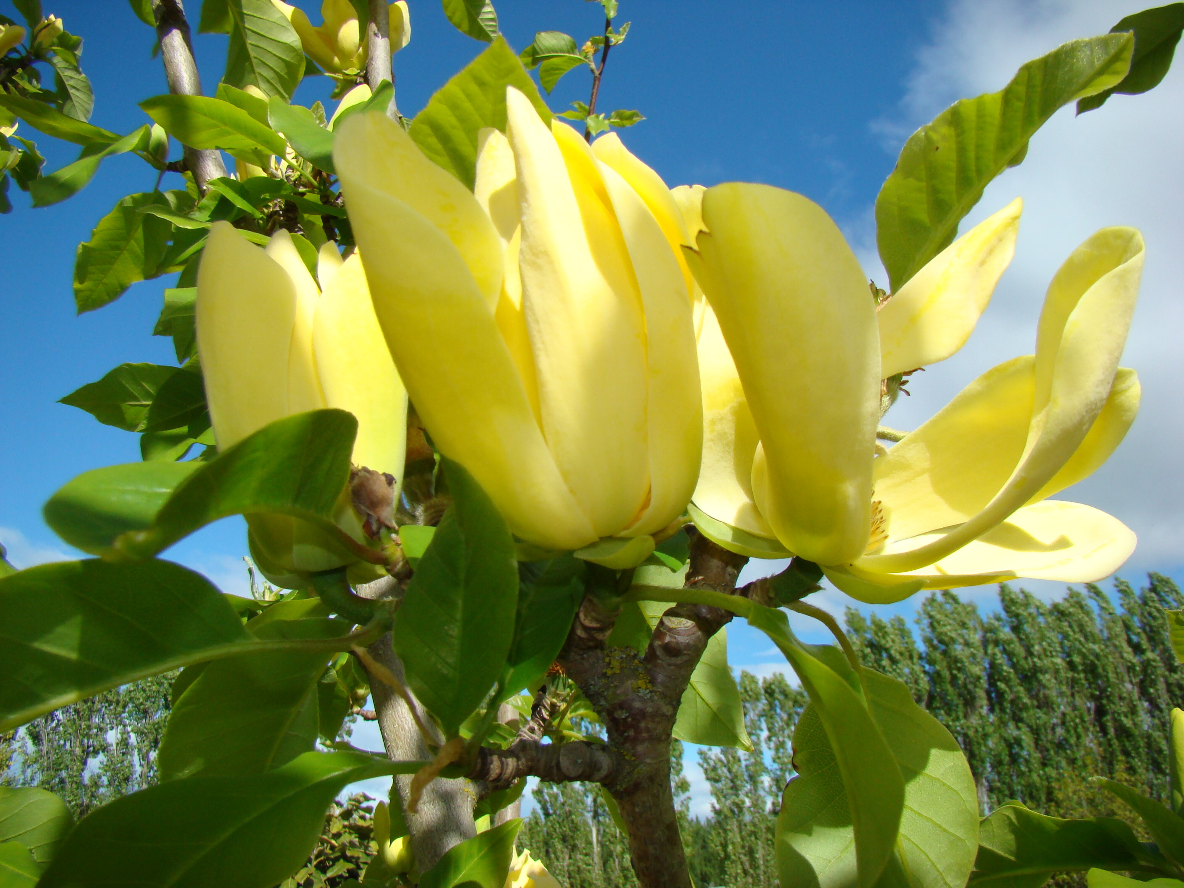 "Elizabeth" x "Woodsman" (Piotr wie o co chodzi xd). Drzewo kilkumetrowe (do 8 metrów wysokości), nieco szersze od większości magnolii. Kwiaty są wyraźnie żółte z czerwoną plamką u podstawy wewnętrznych płatków, duże, w kształcie tulipanów i pachnące. Kwitnie od śmietnia do maja i latem. Bardzo dobra, odporna odmiana.