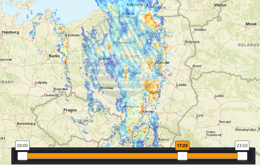 A w dniu 21.08.2016 taka piękna strefa wielkoskalowa, z wbudowanymi konkretnymi burzami, to też niesamowity walor: