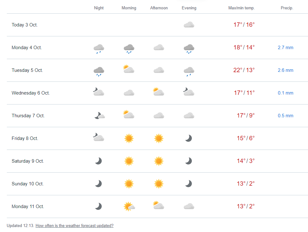 Prognozy pogody - Prognozy na 1 dekadę października