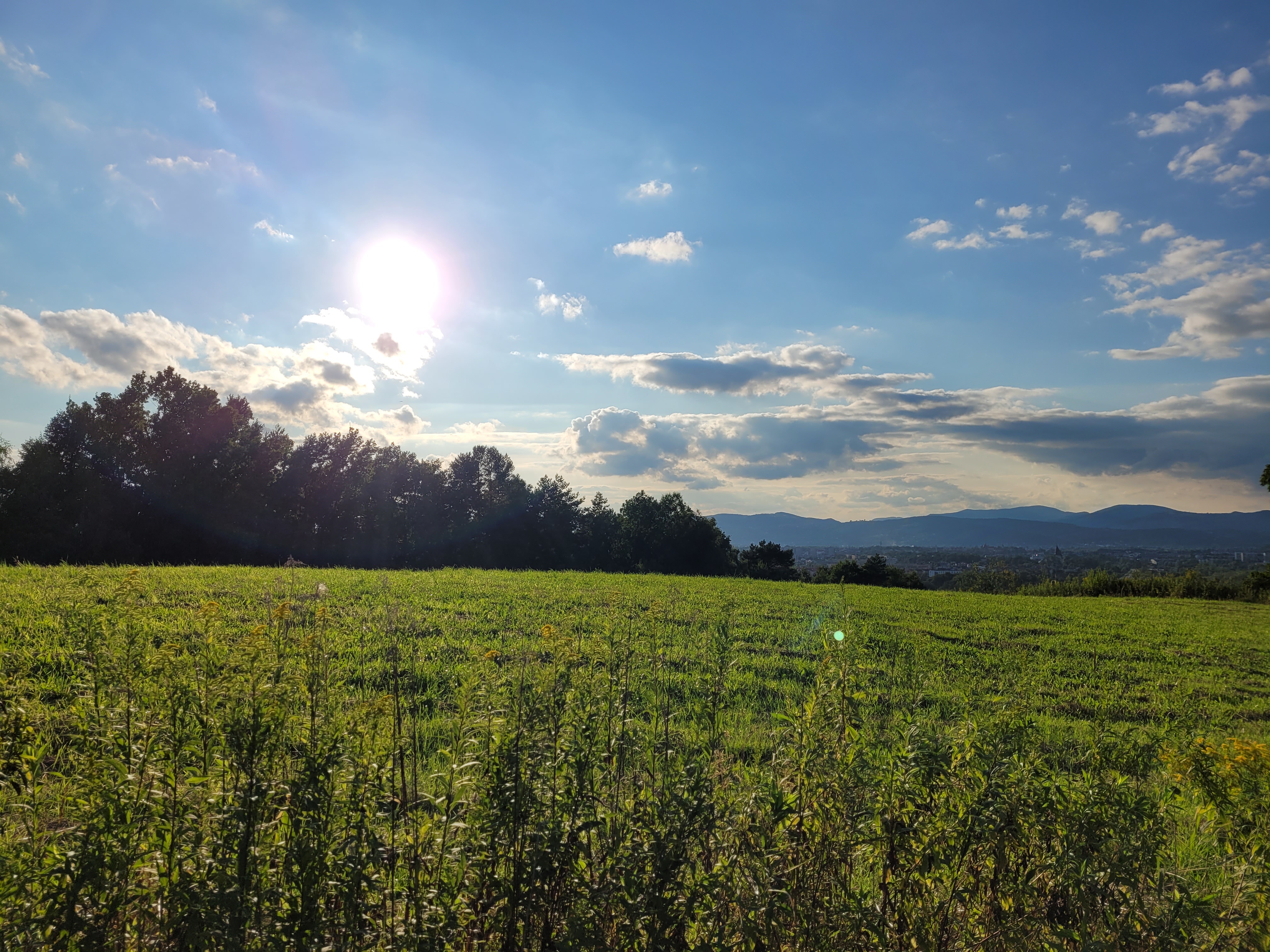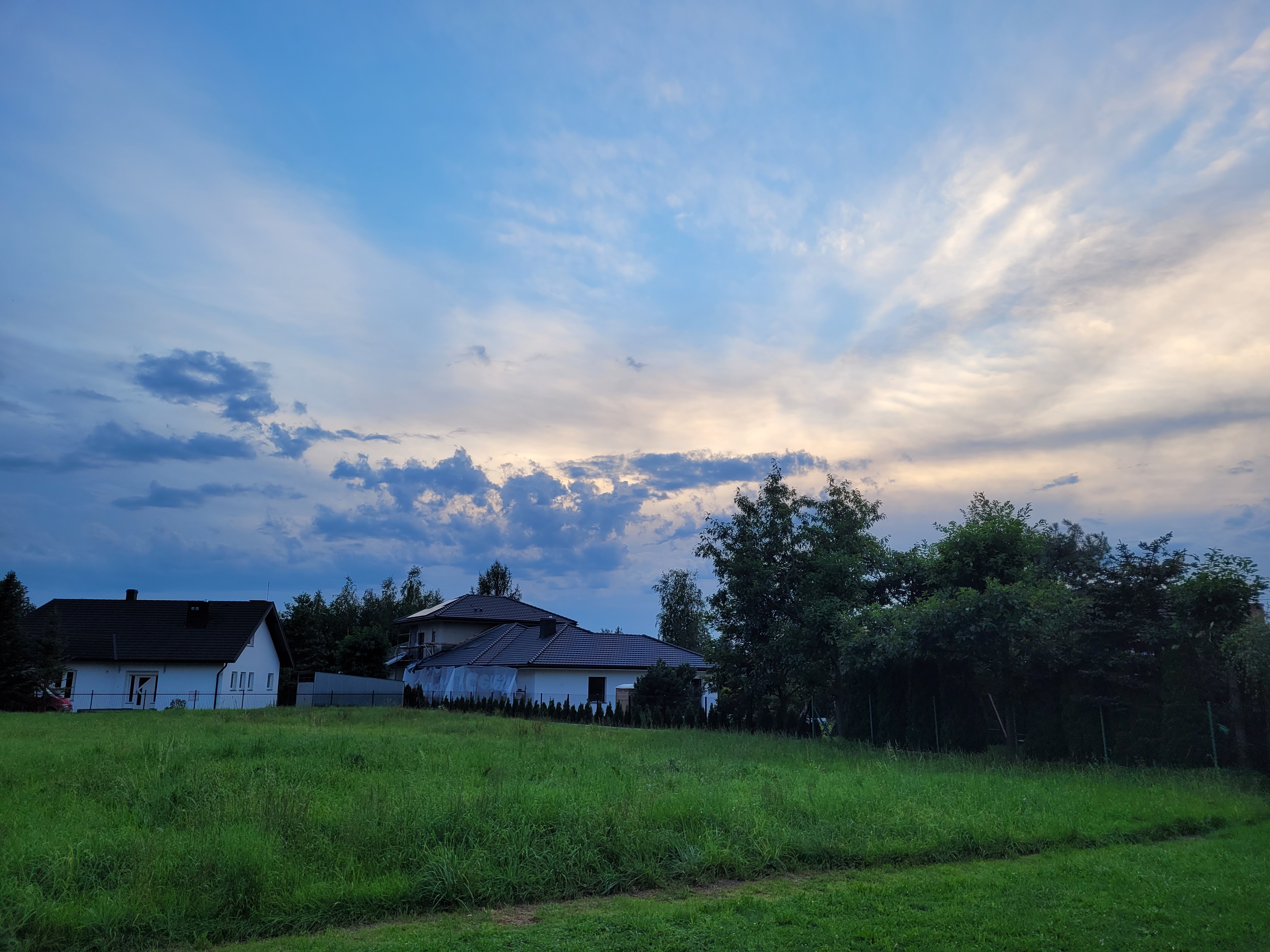 Mocno zwróciły moją uwagę też te zdjęcia rześkiego, pogodnego nieba na różnych etapach tego miesiąca, np 3.08 czy 7.08. Mimo, że ten miesiąc u mnie miał docelowo bardzo niskie usłonecznienie, to i tak z niego najlepiej zapamiętałem te rześkie, błękitne poranki, oczywiście głównie przed 24.08. Tych zielonych trawników, czasem wręcz nienaturalnie oroszonych wilgocią, też nie sposób pomylić z innym miesiącem.