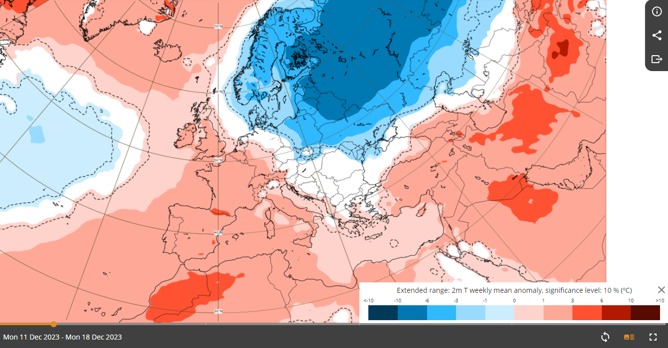 A to schładzające się prognozy tygodniowej anomalii ECMWF: