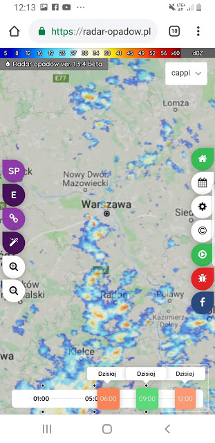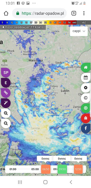 Mówiąc o tym dniu, warto jeszcze pokazać skany radarowe, bo pięknie wszystko wirowało tego dnia. Widać też wyraźnie, że na południe od W-wy było kilka konwkecji, ale w samym mieście praktycznie nic: