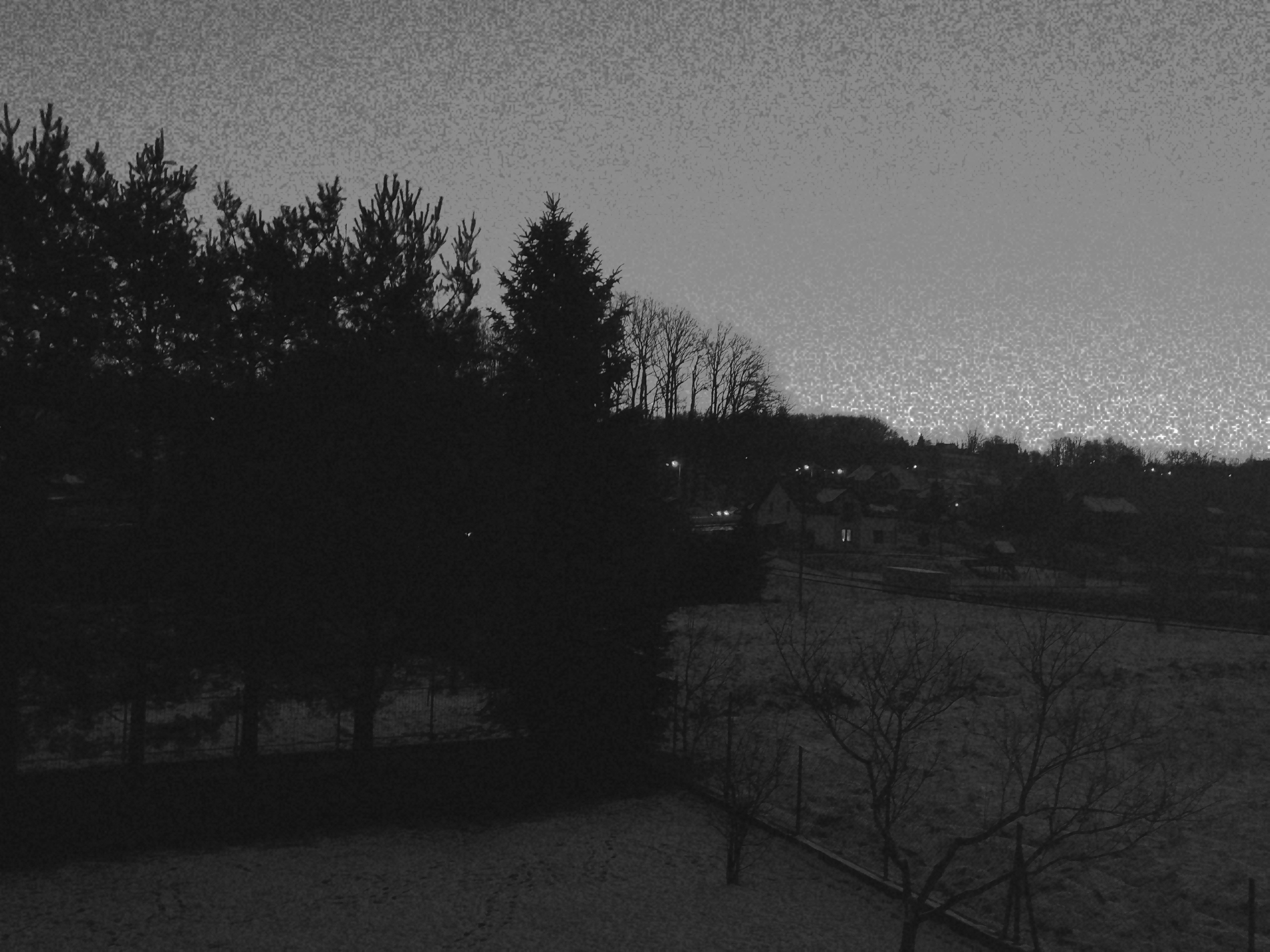 Poniższe zdjęcie przedstawia świat przed wschodem Słońca 31 grudnia 1983 roku. Okres świąteczny-noworoczny był wtedy ekstremalnie mroźny, temperatury spadały do -30 stopni... Jak widać, śniegu także było pod dostatkiem, jednak to mrozy najbardziej dały się we znaki. Pogoda na szczęście potrafiła odpłacić za tę niedolę i w nagrodę za wytrwałość zesłała gorące lato, piękne i słoneczne jak... zawsze w tych czasach